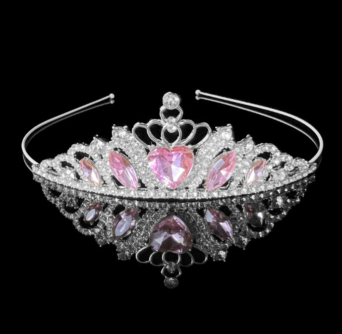 New Crown Headpiece Children's Headband Heart-shaped Crystal Crown Birthday Party Hair Accessory