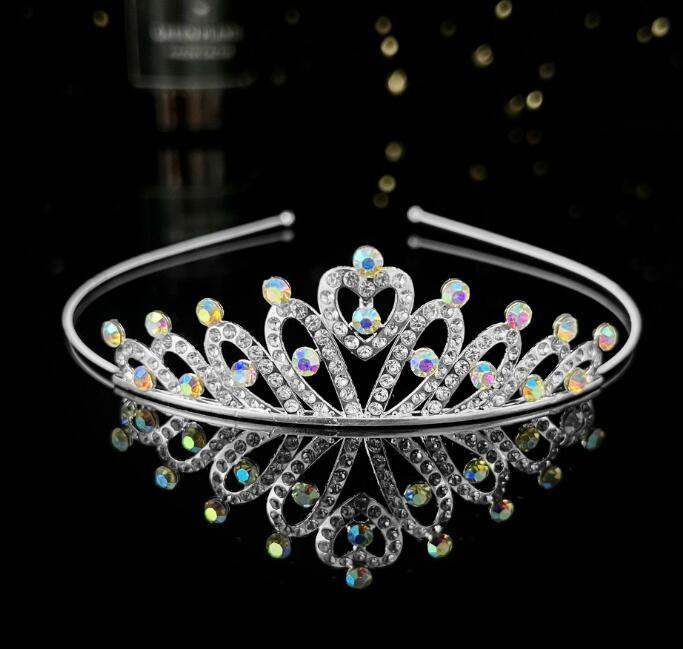 Korean-style bridal rhinestone hairband crown-shaped heart colorful headpiece crystal alloy crown headpiece