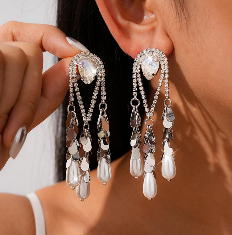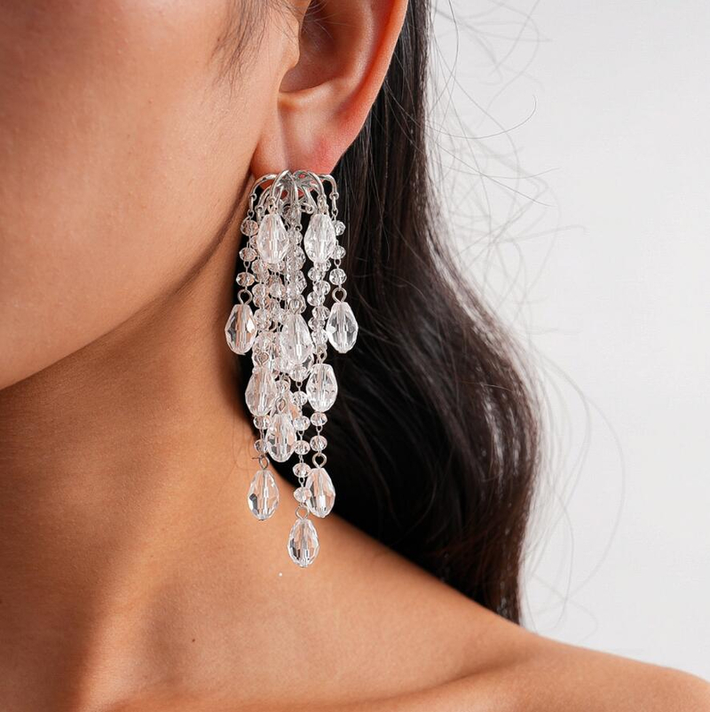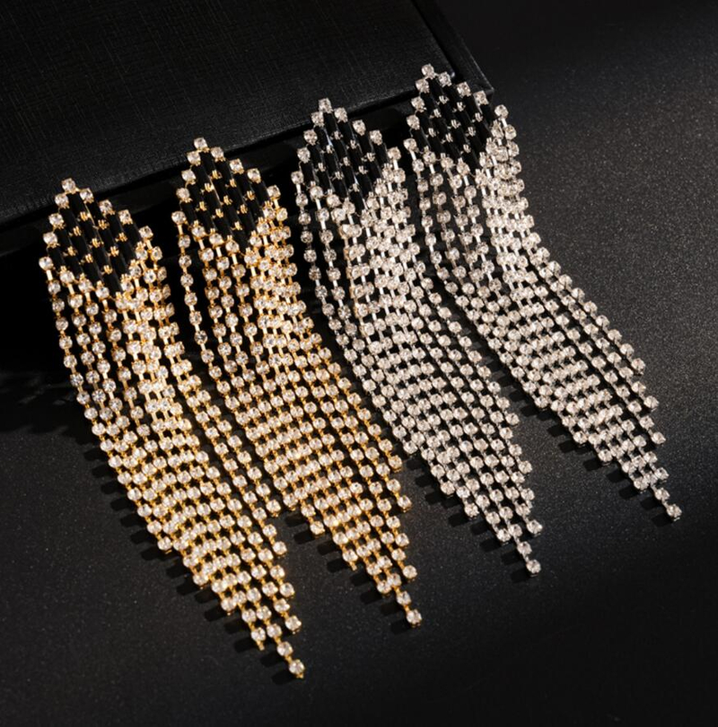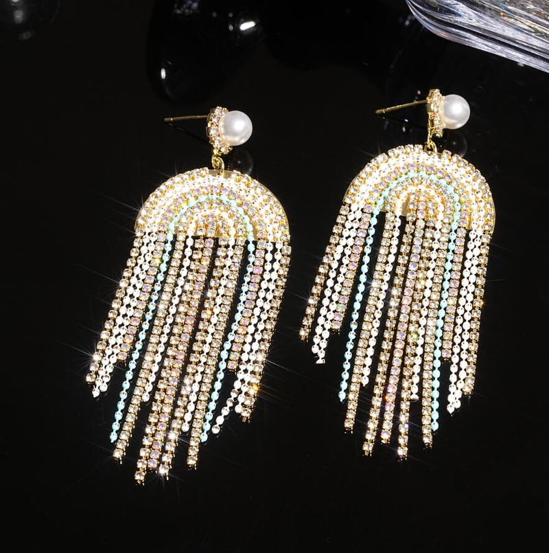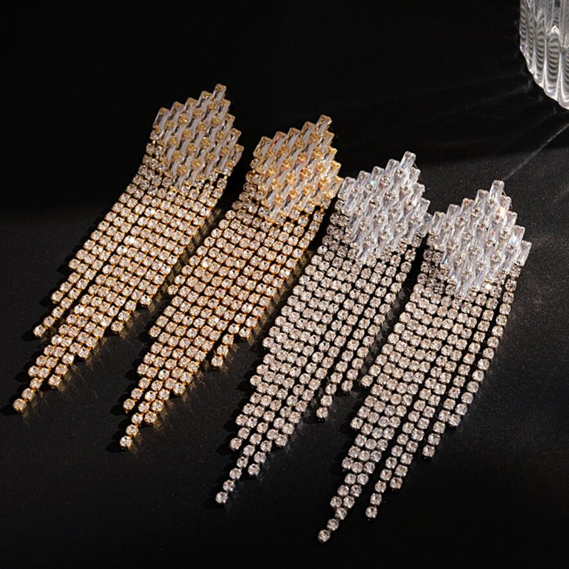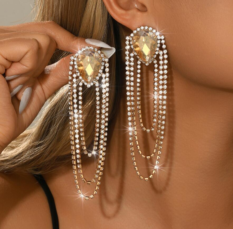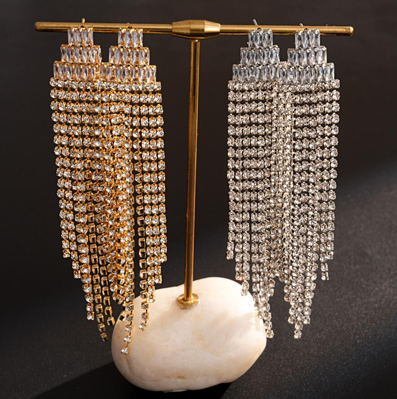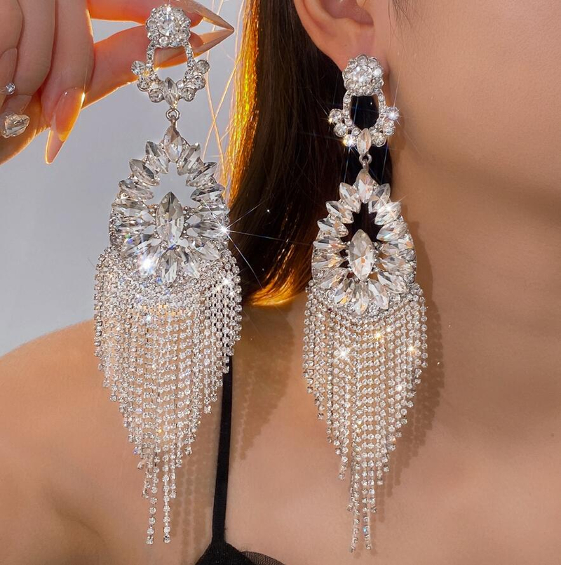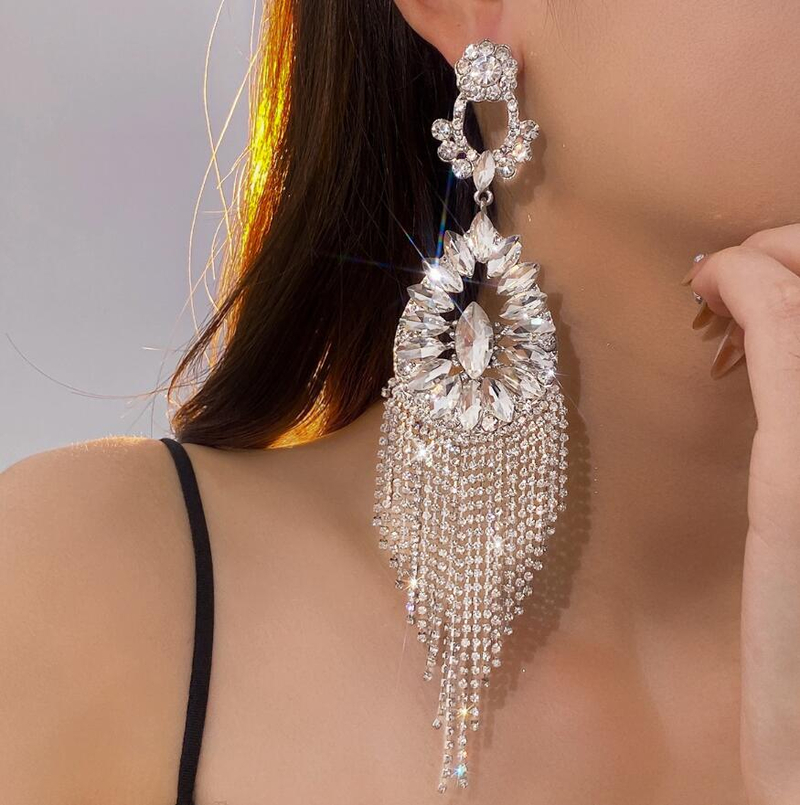 Fashion long fringed crystal earrings for women exaggerated ear ornaments