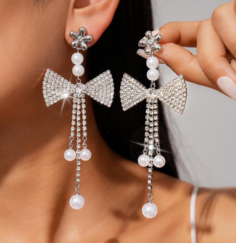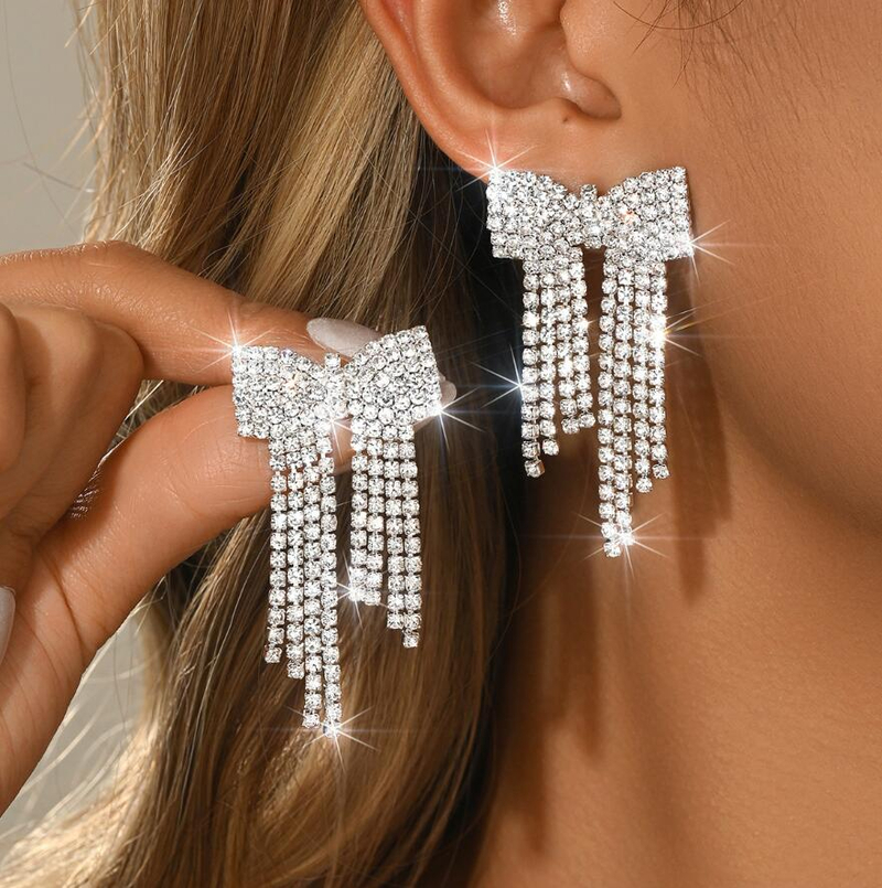 Fashionable and trendy bridal earrings with crystal tassels wedding banquet accessories