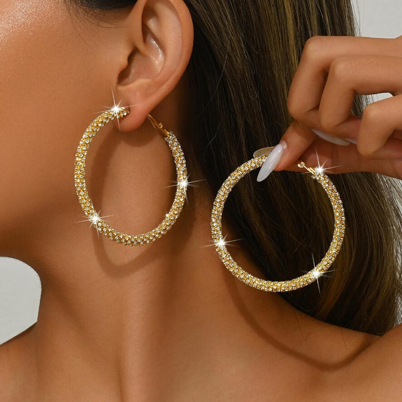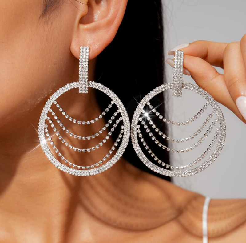 Niche design style circular crystal earrings that slim the face and are exaggerated