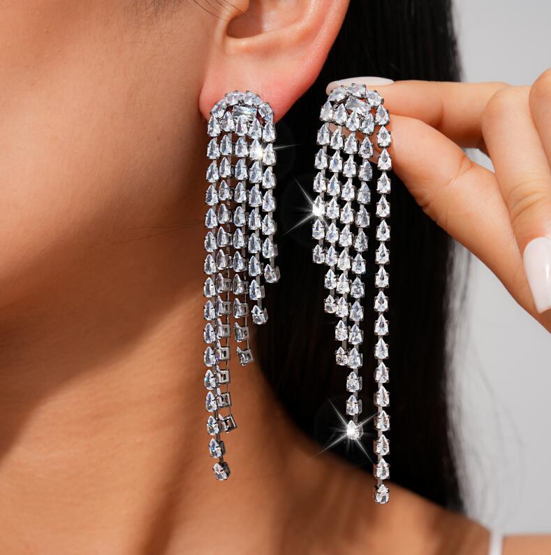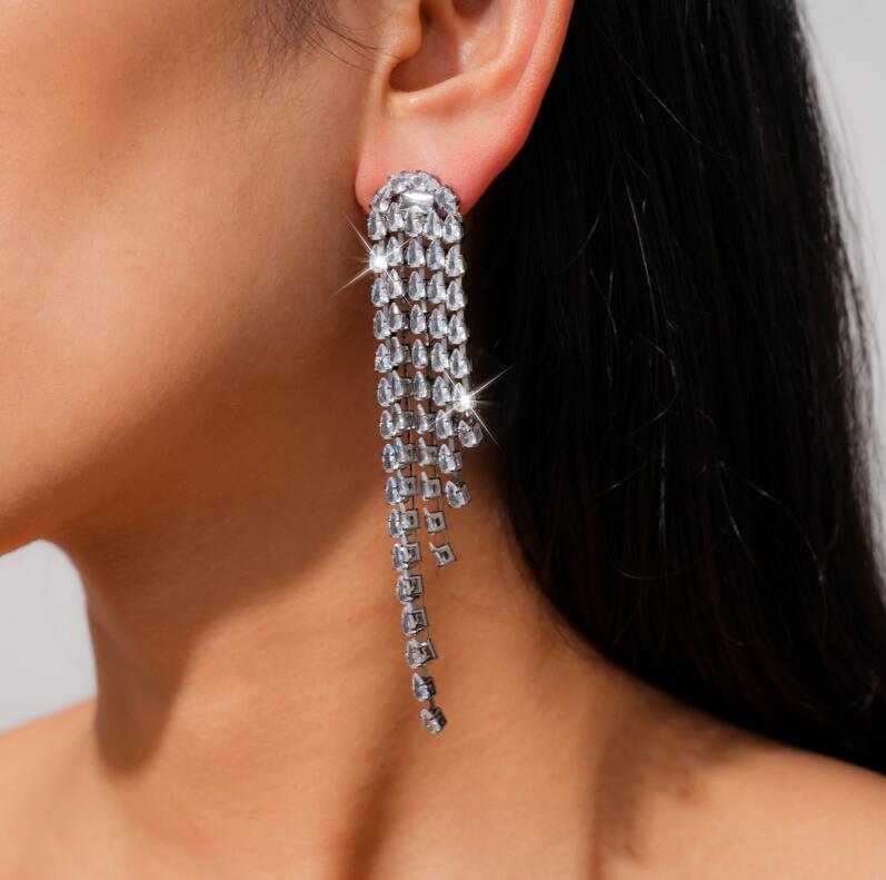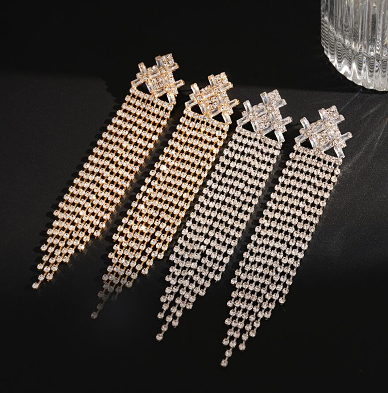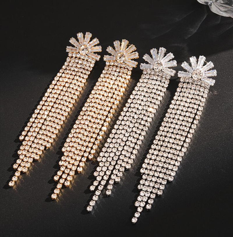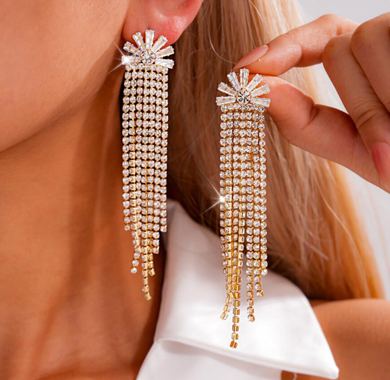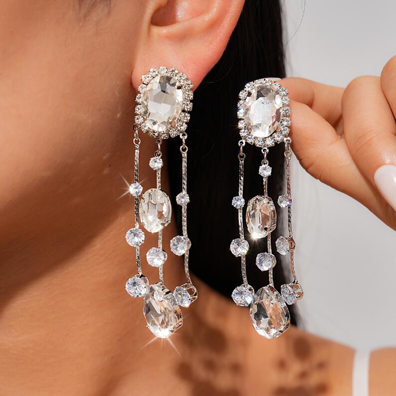 Best-selling crystal long dangling fringed earrings for women stud earrings