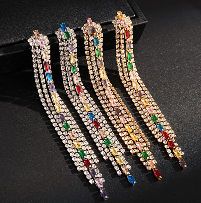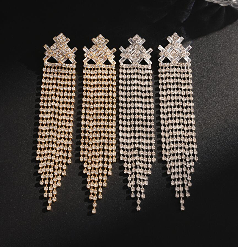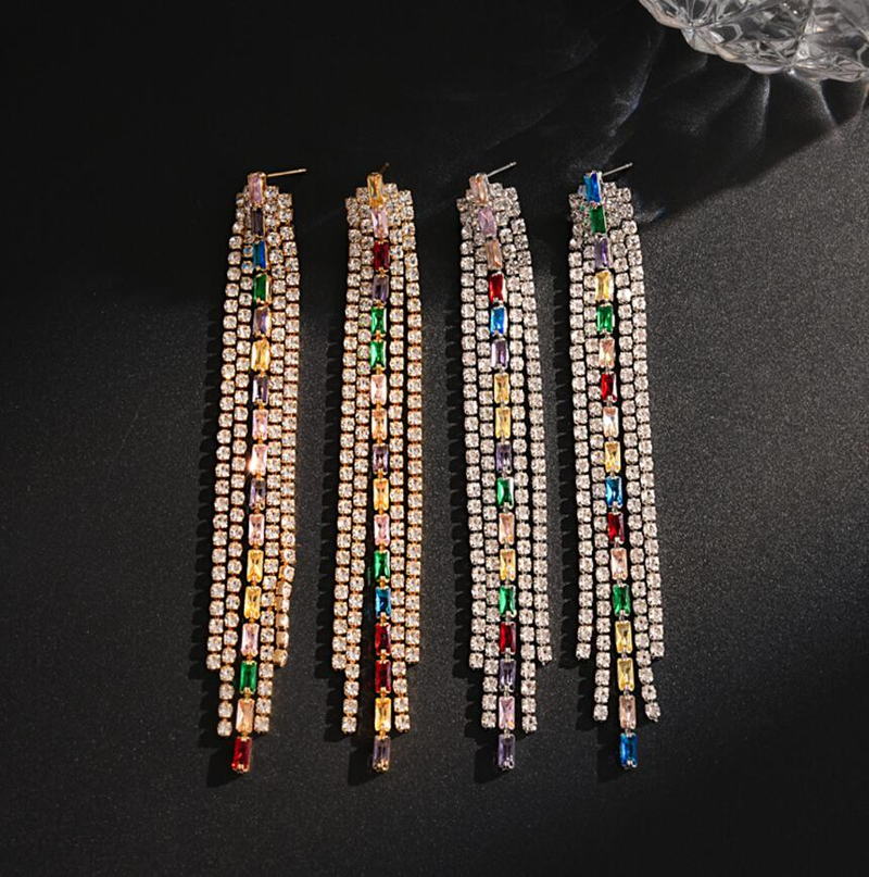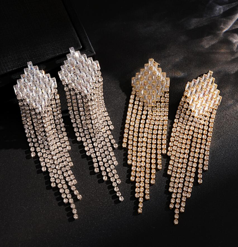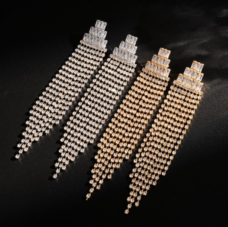 Best-selling crystal long dangling fringed earrings for women stud earrings