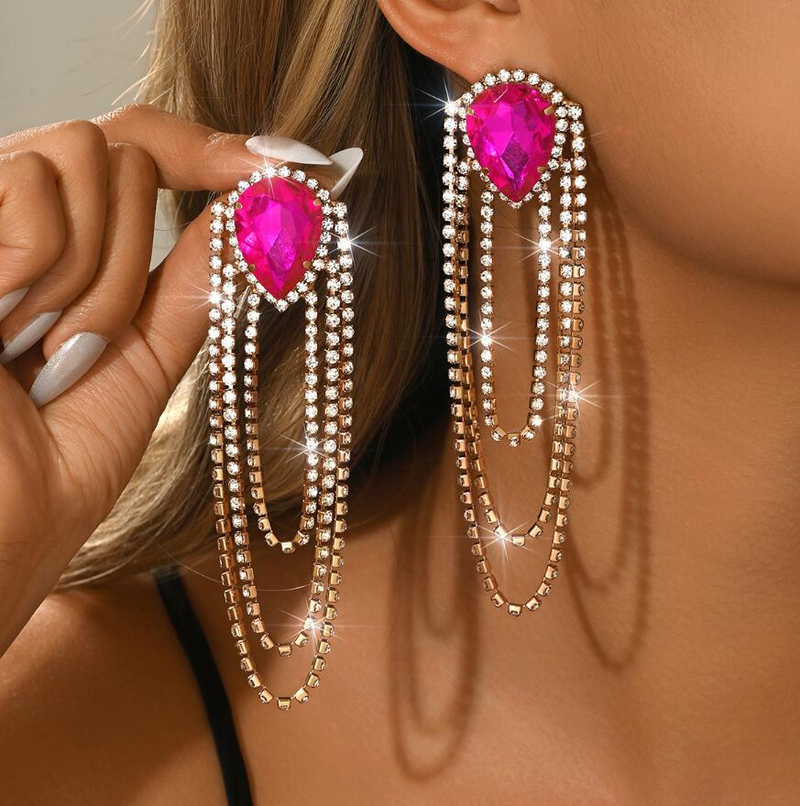 Glass water droplet exaggerated long-style earrings for women ear pendants jewelry