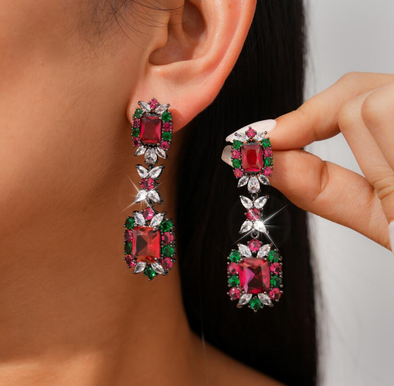 Women's multi-layered crystal earrings with colorful and shiny finish wholesale