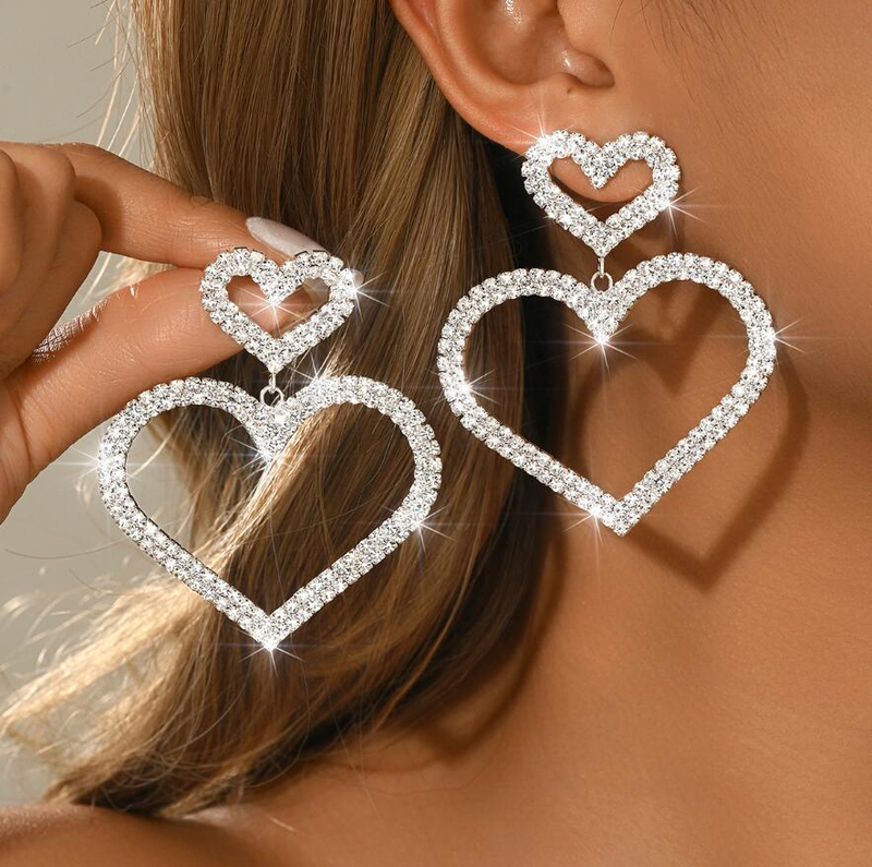 Heart-shaped rhinestone ultra-bright love earrings for women