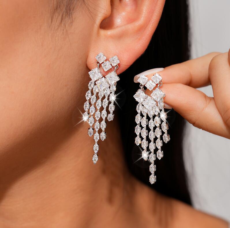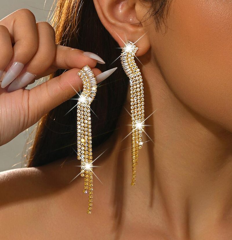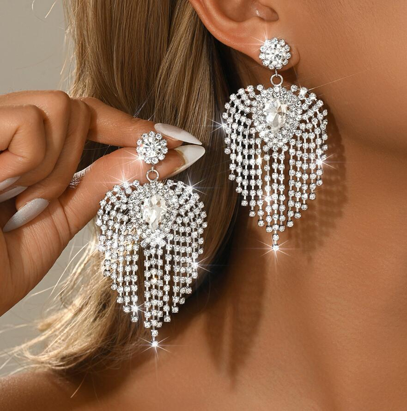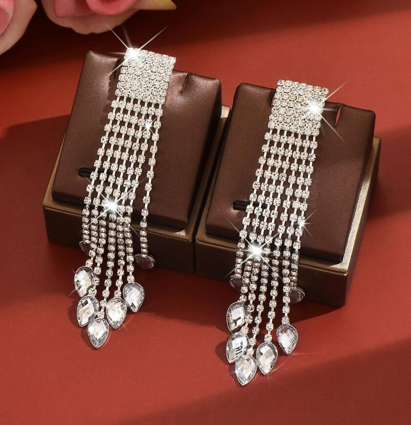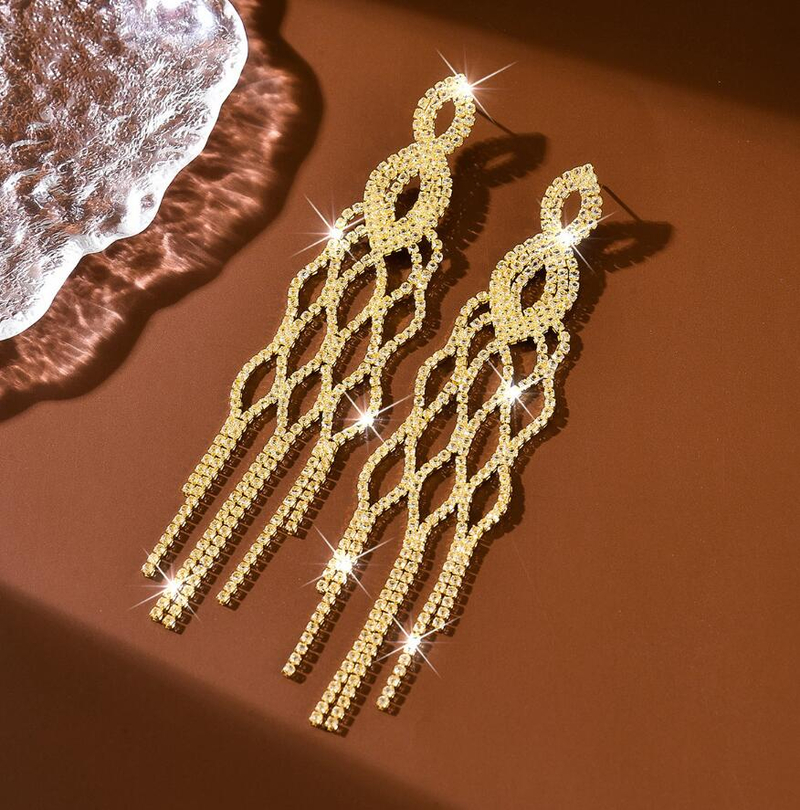 Long fringed earrings for women luxurious and shiny diamond-studded ear accessories