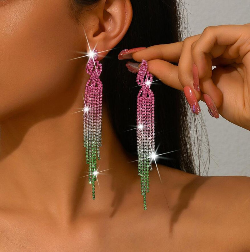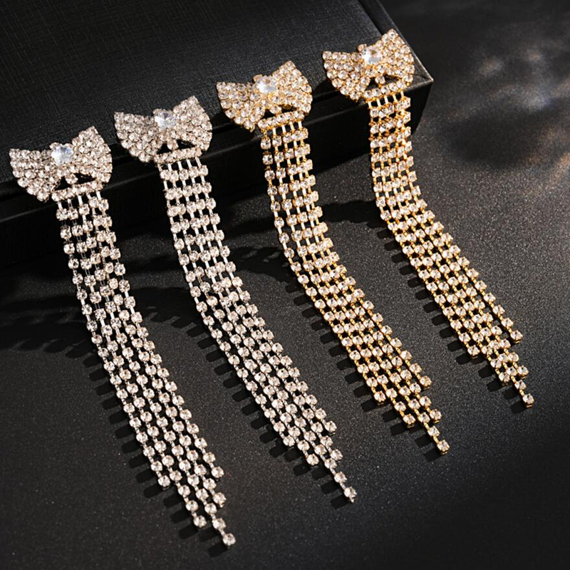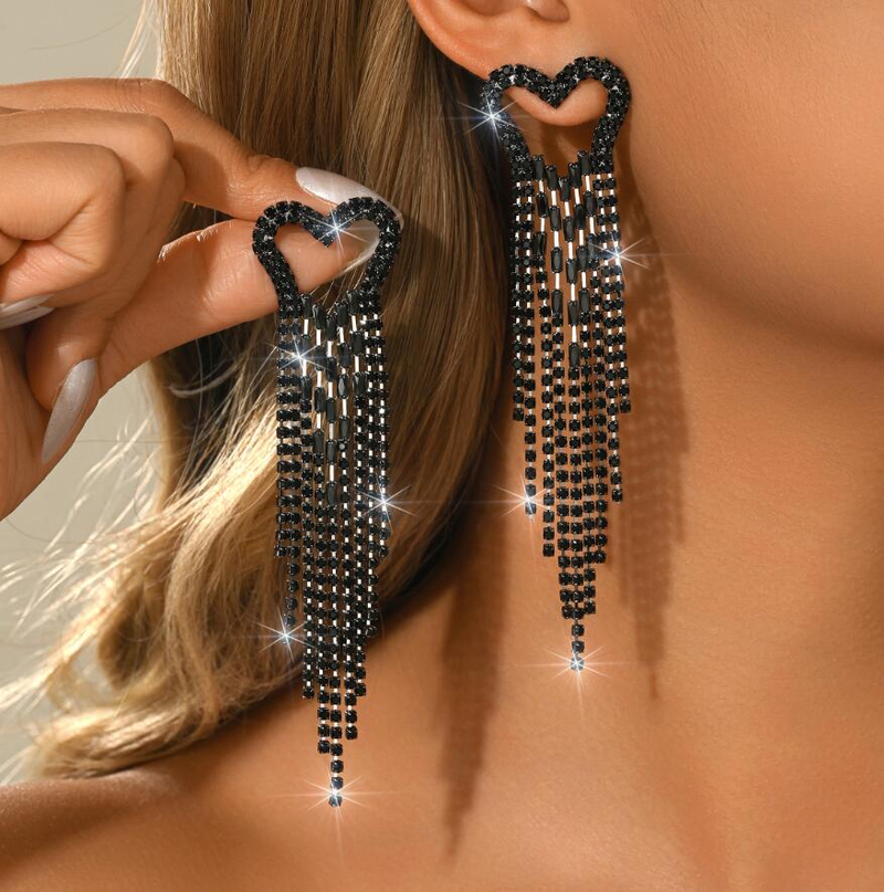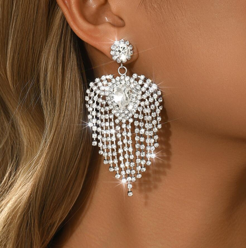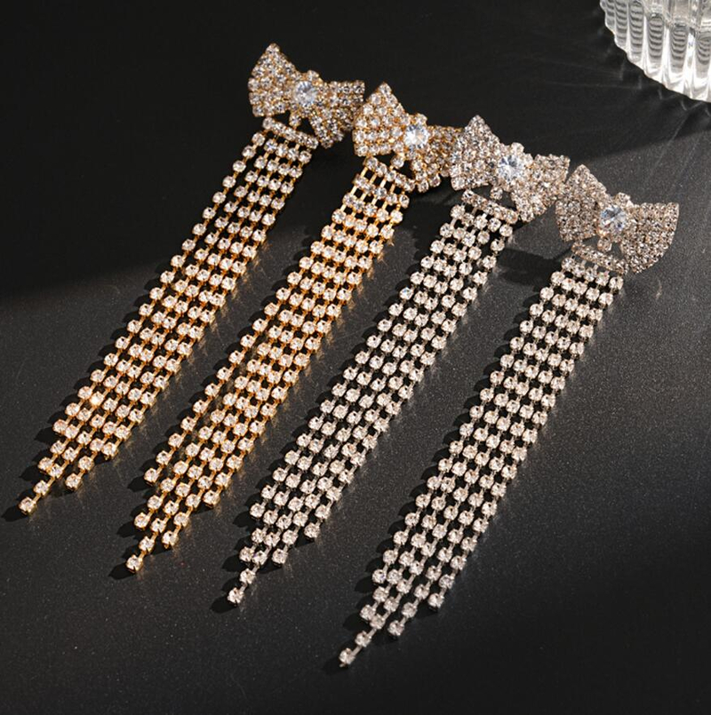 Long fringed earrings for women luxurious and shiny diamond-studded ear accessories