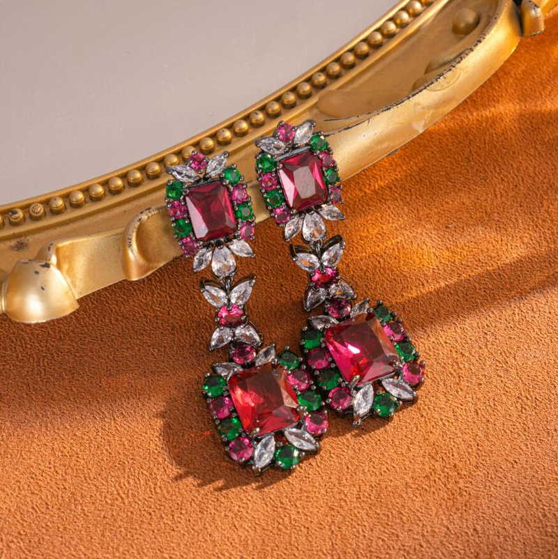 Hot selling vintage-style resin crystal earrings with embedded diamonds wholesale