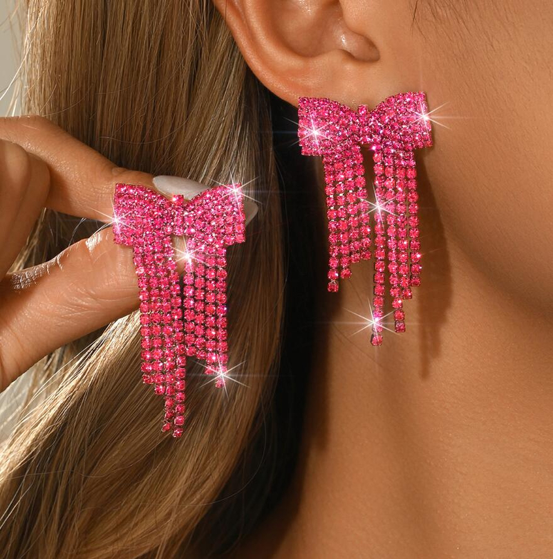 Ultra-bright diamond-studded bow-shaped stud earrings for women