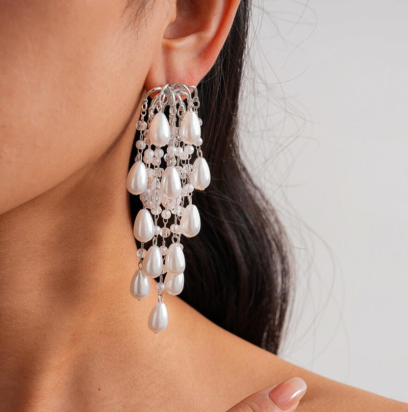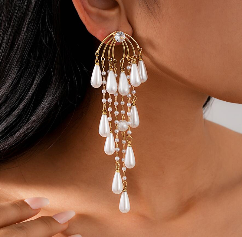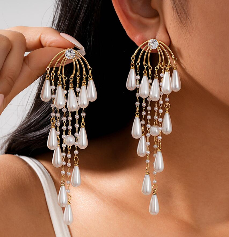 Luxurious and high-end ear studs fringed pearl earrings for women