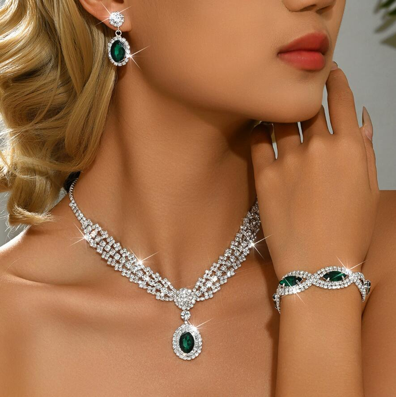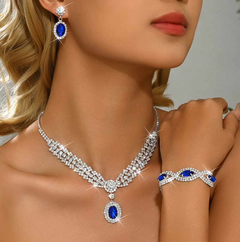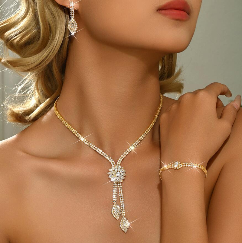 Exaggerated necklace earrings and bracelet set three-piece set diamond collar bridal set