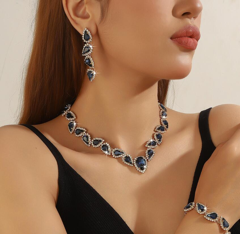 Best-selling claw chain with blue sapphire earrings and necklace set bridal wedding jewelry