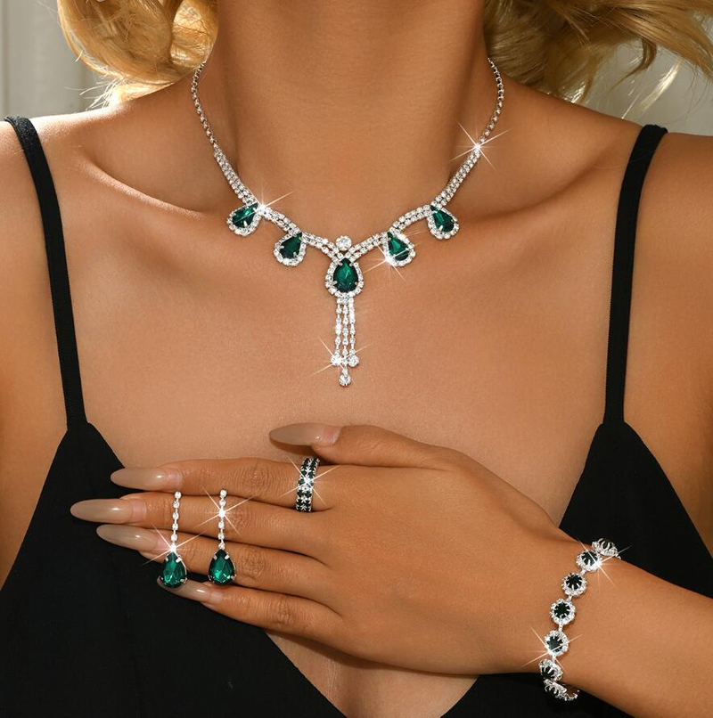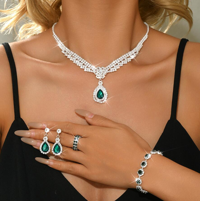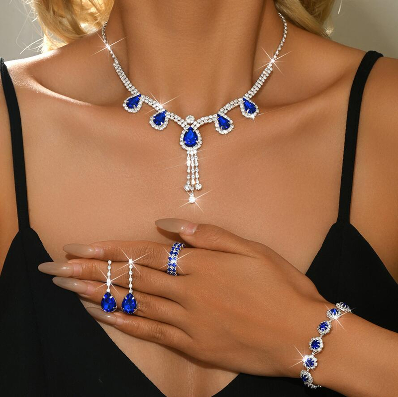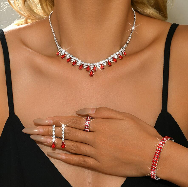 Four-piece jewelry set colorful diamond-studded necklaces set