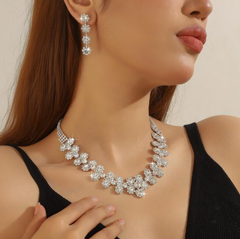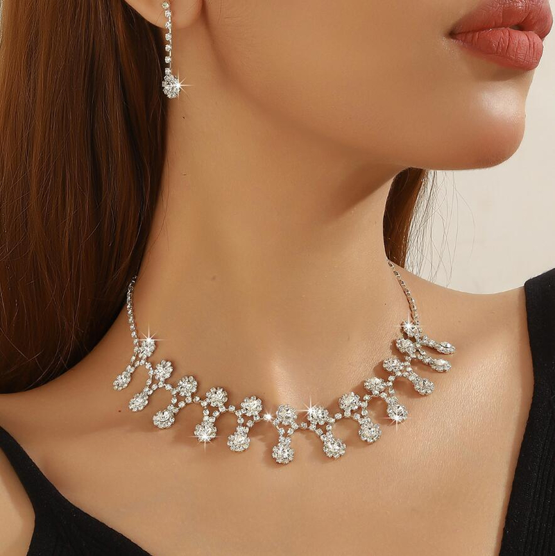 Cross-border bride rhinestone jewelry set crystal collar for wholesale