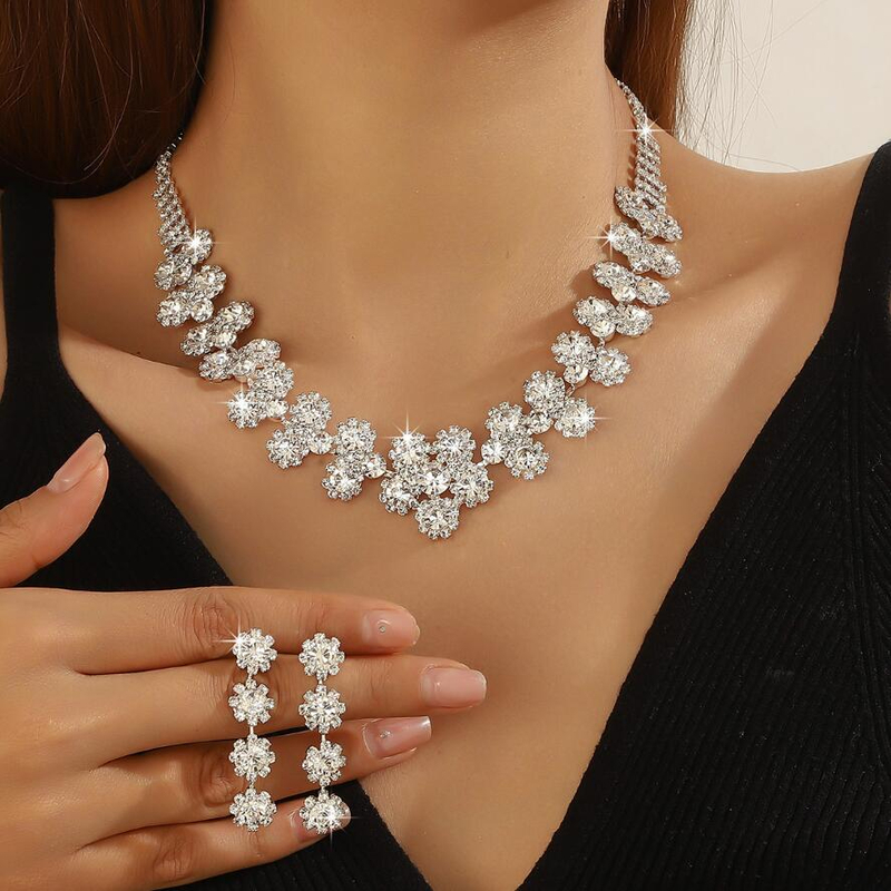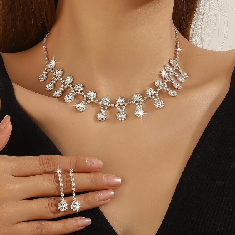 Exhibition-style full-diamond hoop earrings crystal bridal jewelry necklace