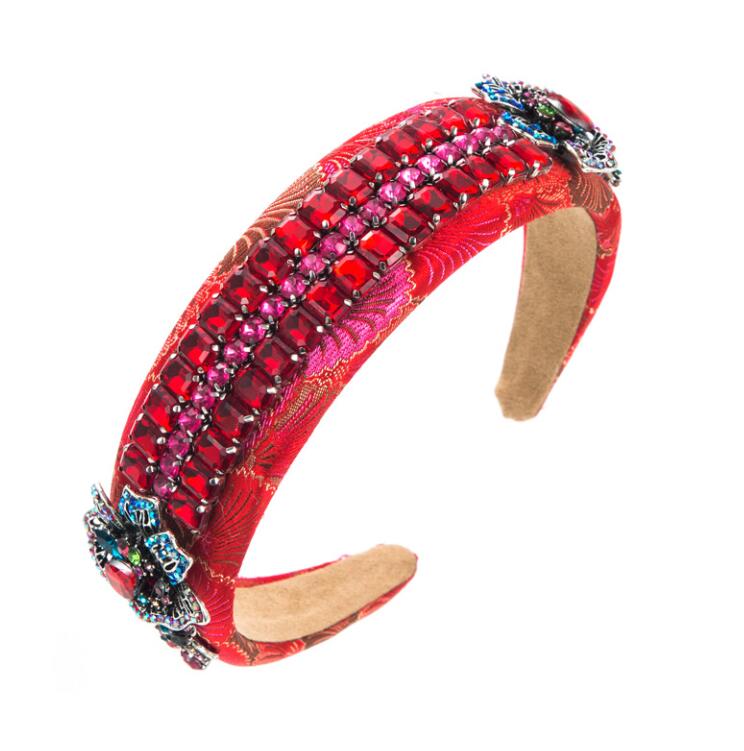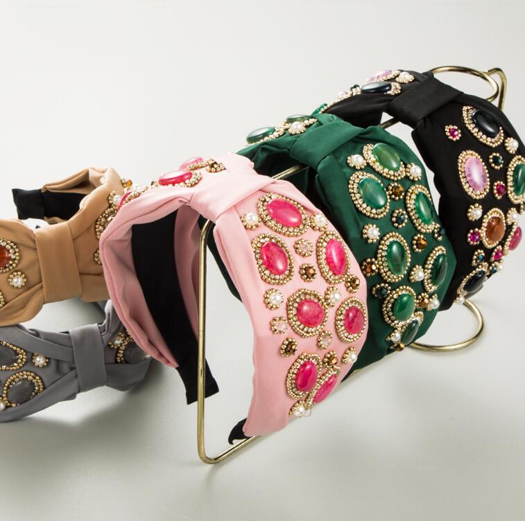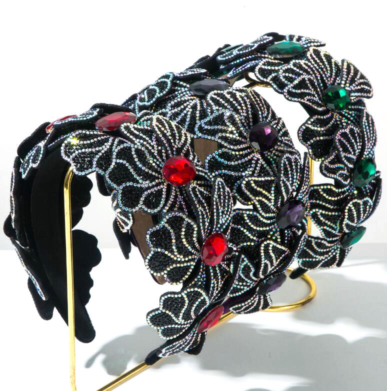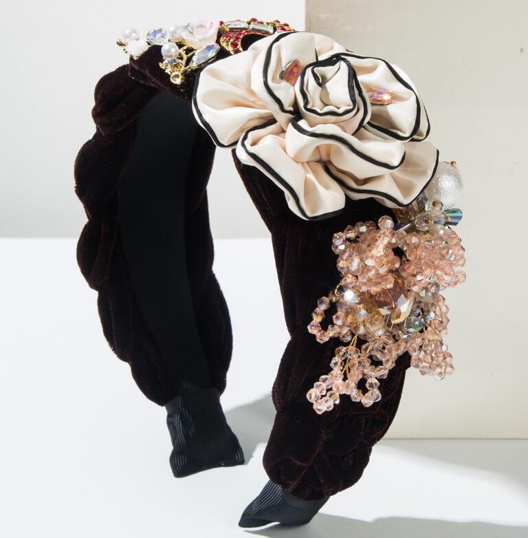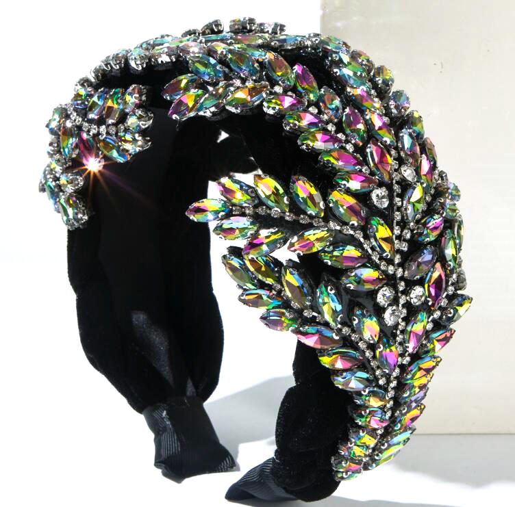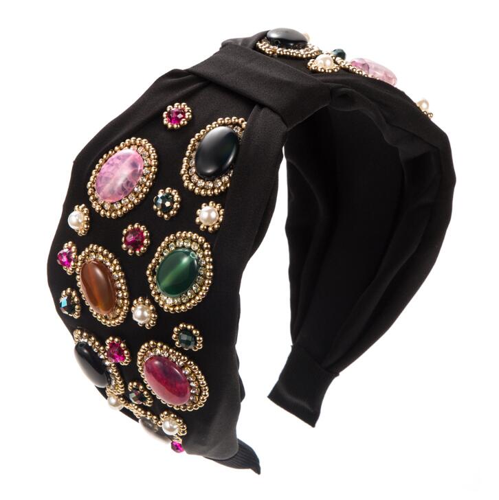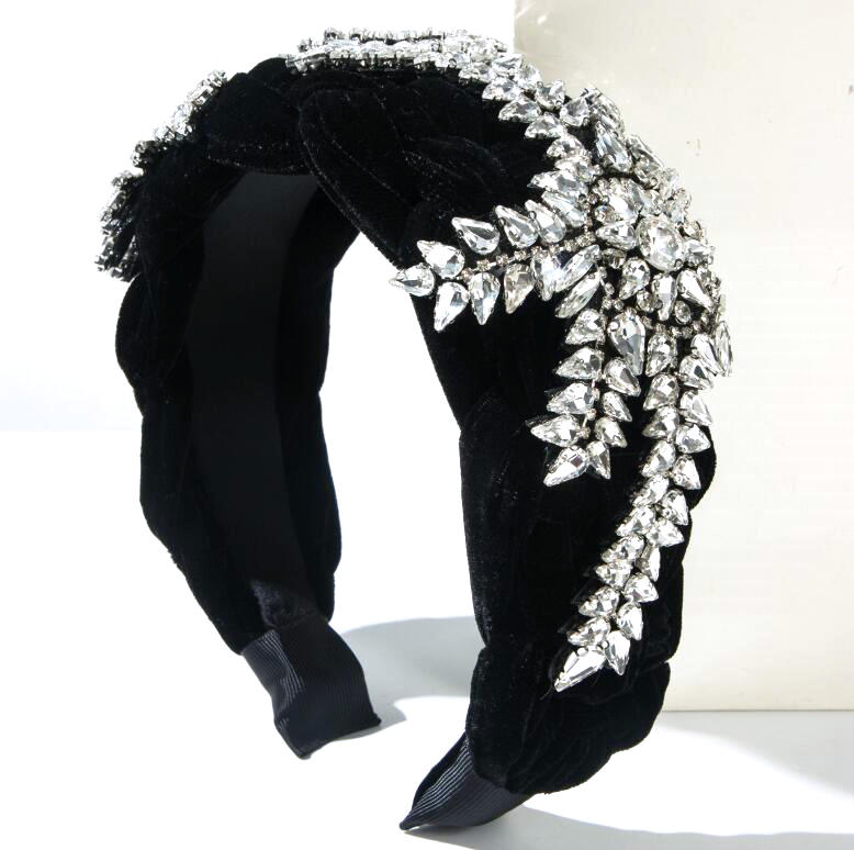 high-end fabric wide-brimmed headband with abundant crystal