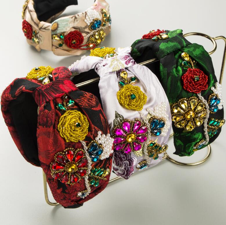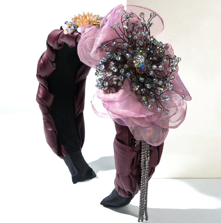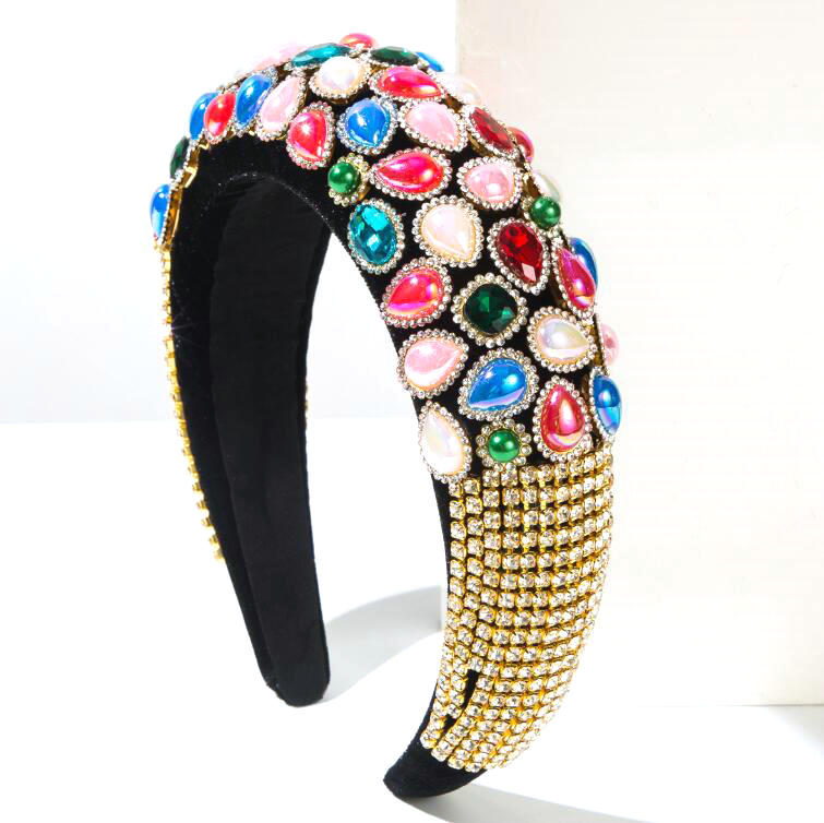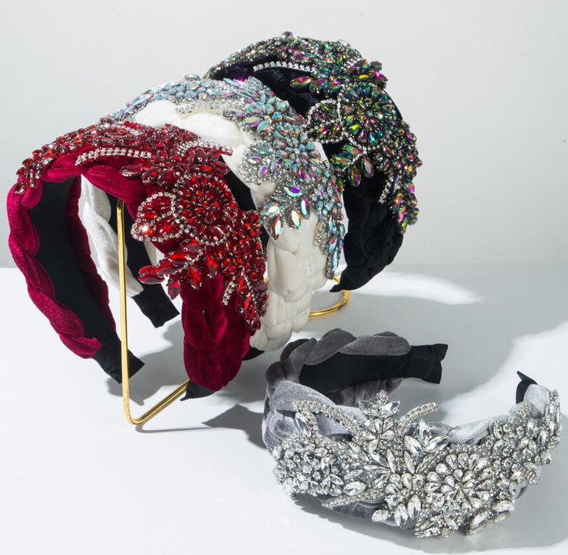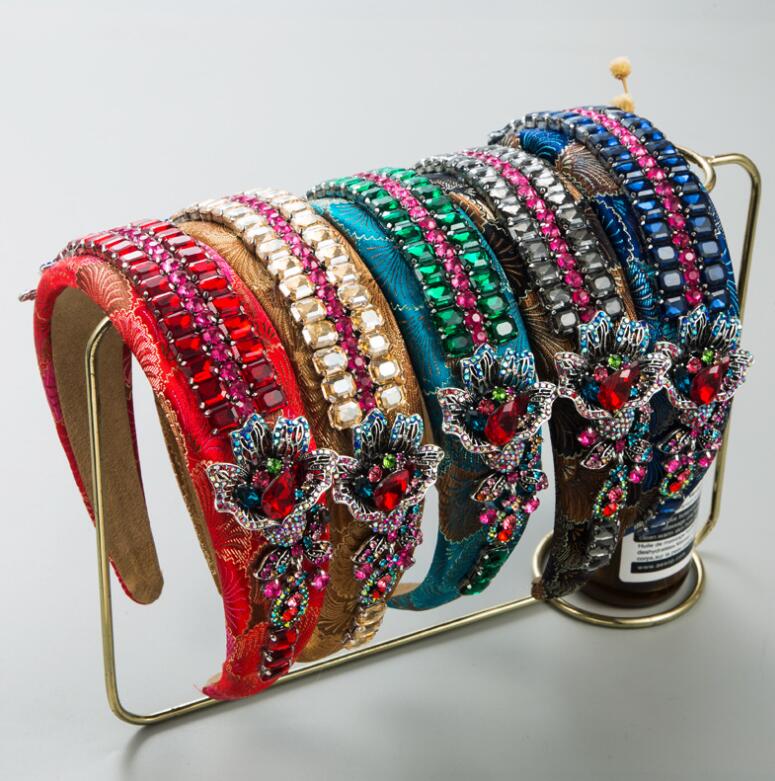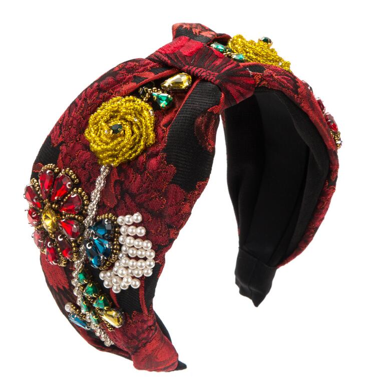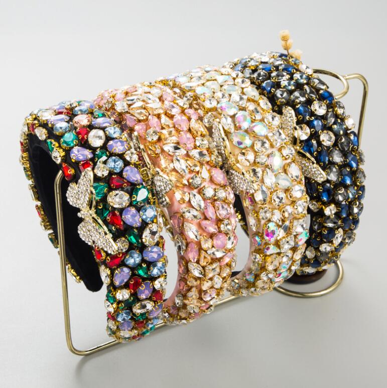 high-end fabric wide-brimmed headband with abundant crystal
