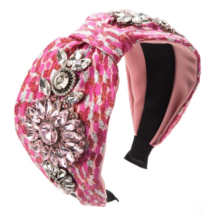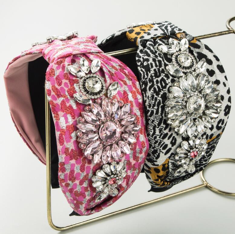 luxury headband with retro leopard print wide ultra-shiny gemstone elegant hairband hair accessory