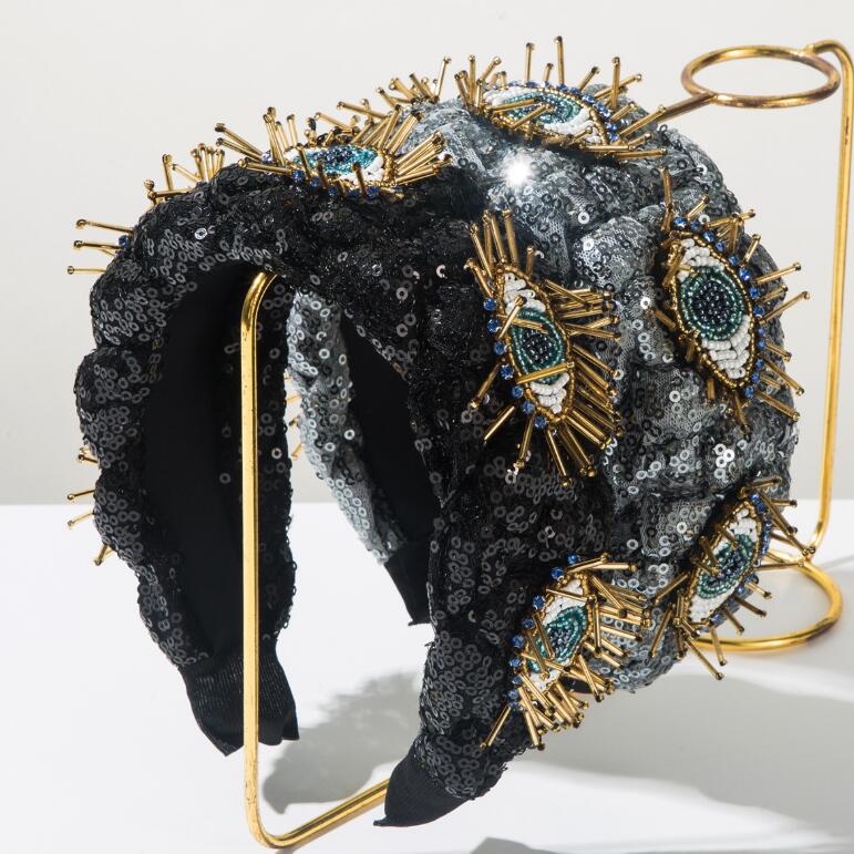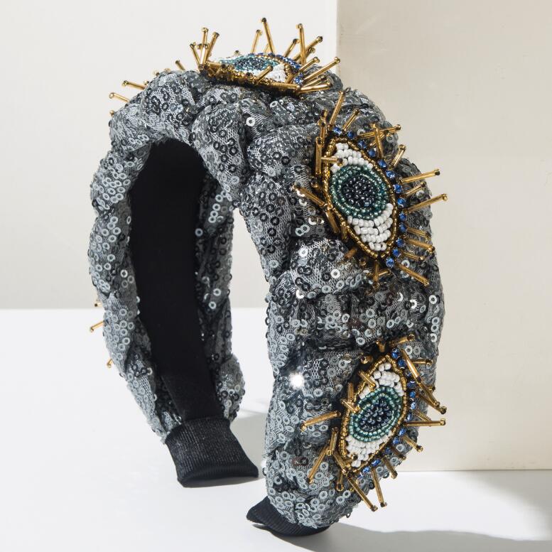Handmade twisted sequin fabric wide hairband for women embedded gemstones devil's eye accessories