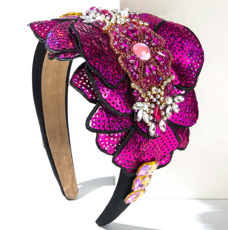 Retro fashionable gemstones headband hand-sewn sequins flower design dance party hair accessory