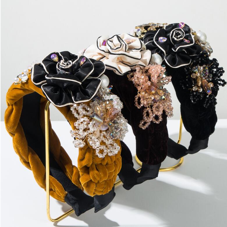 New velvet woven hairband elegant autumn-winter beaded crystal hair accessory