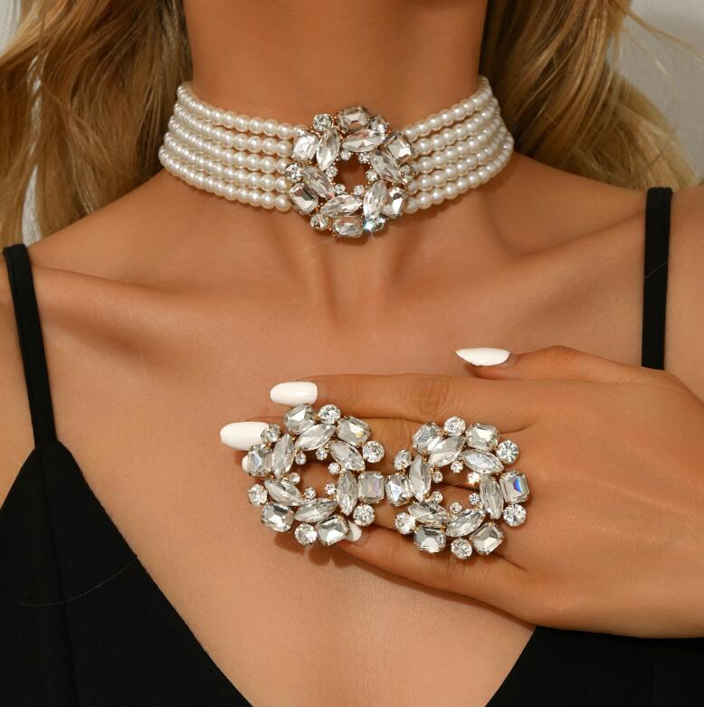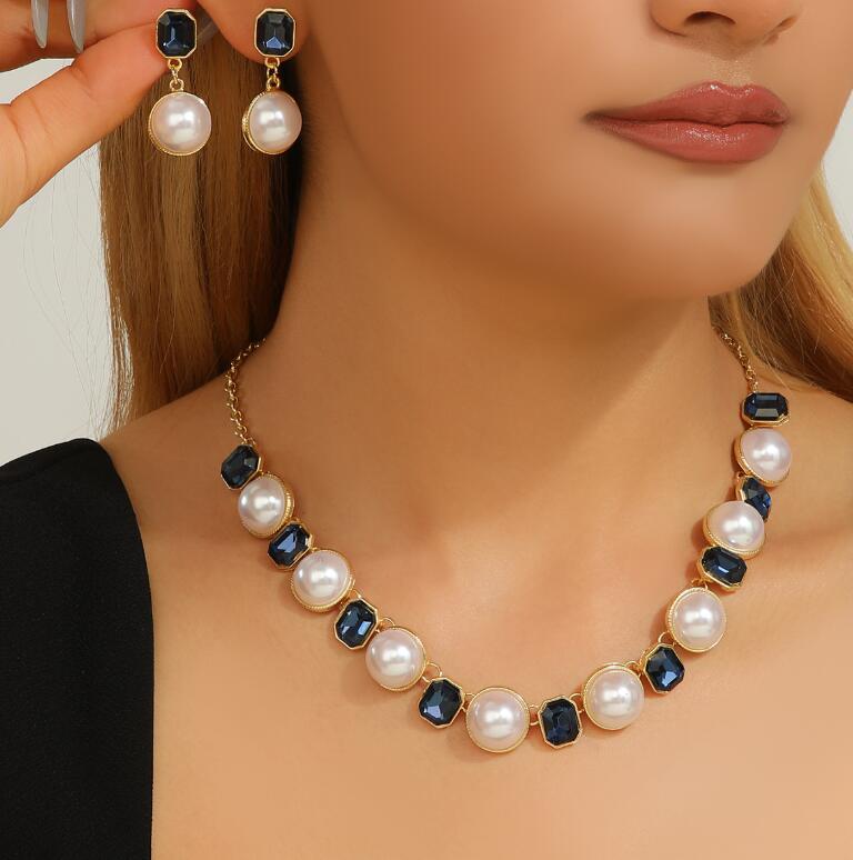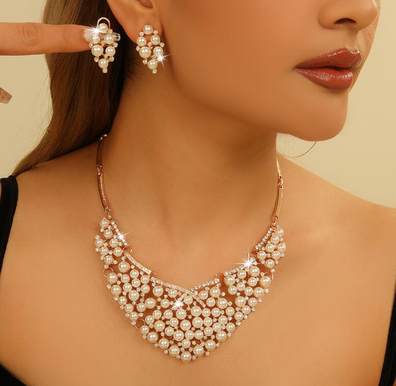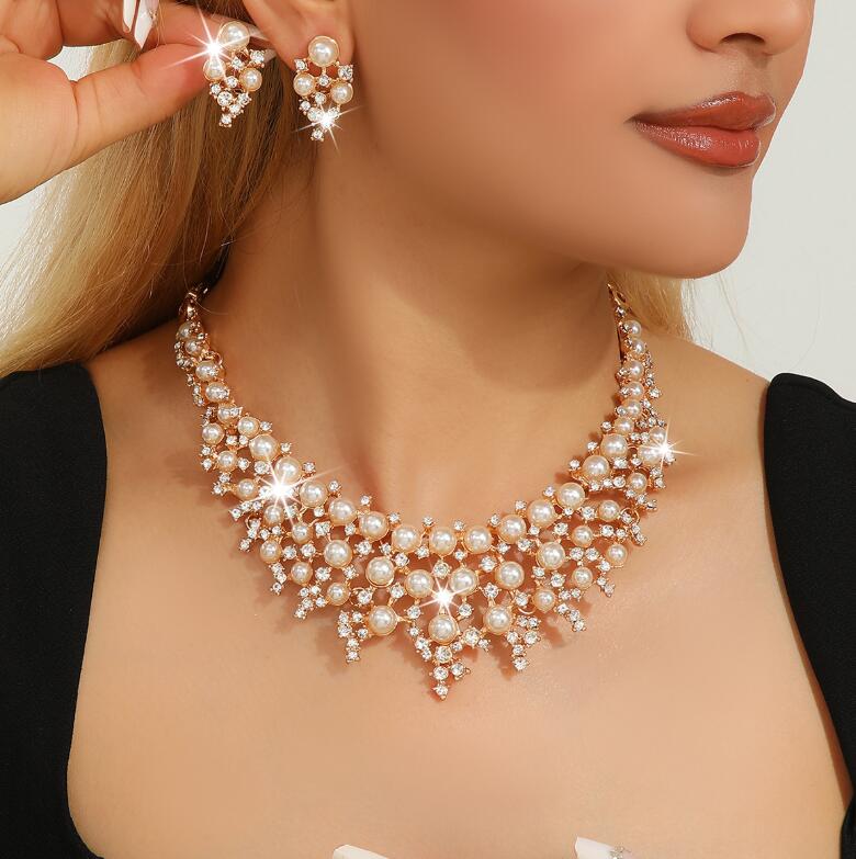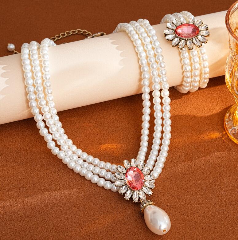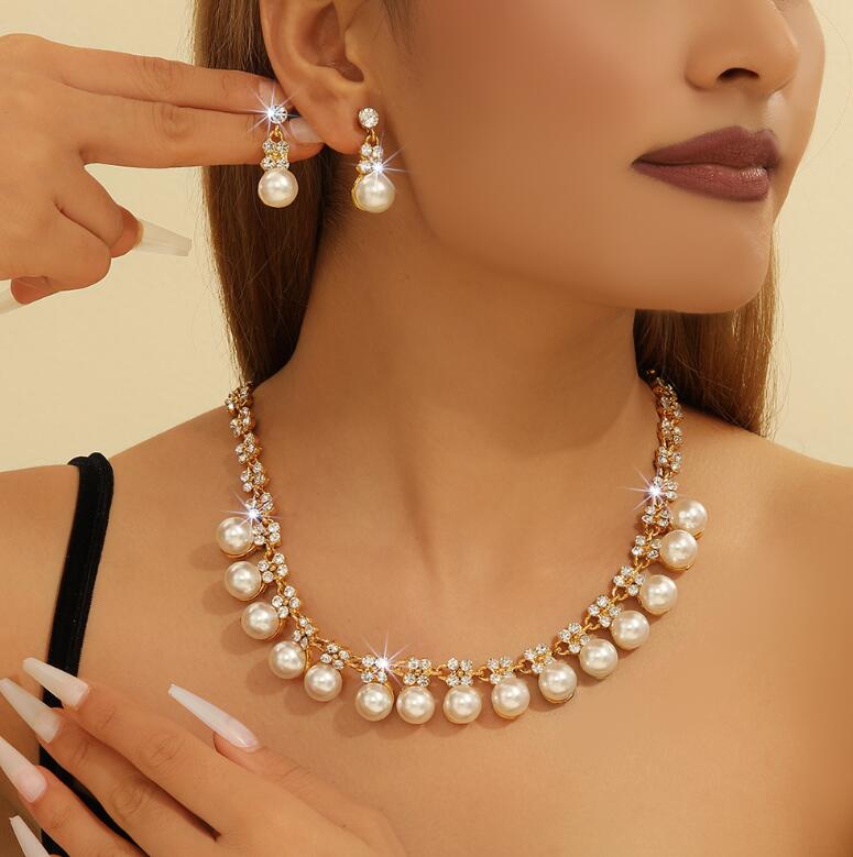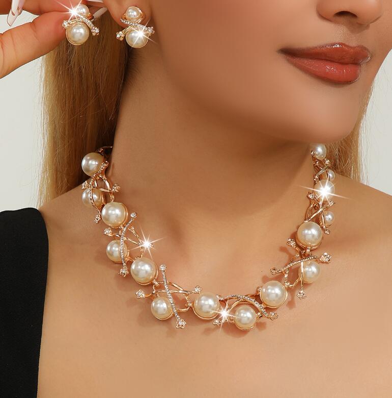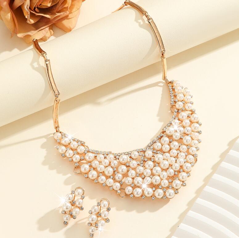 Retro necklace set for ladies' accessories dazzling imitation pearls and exaggerated jewelry