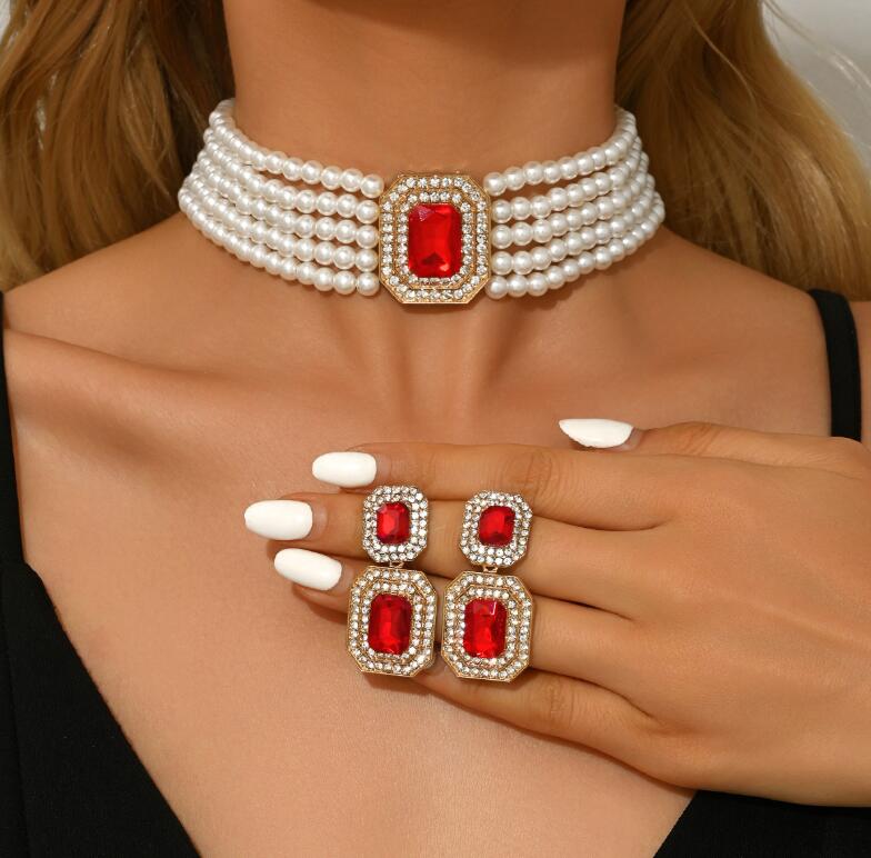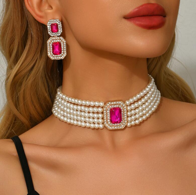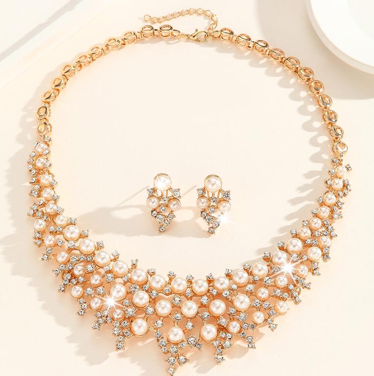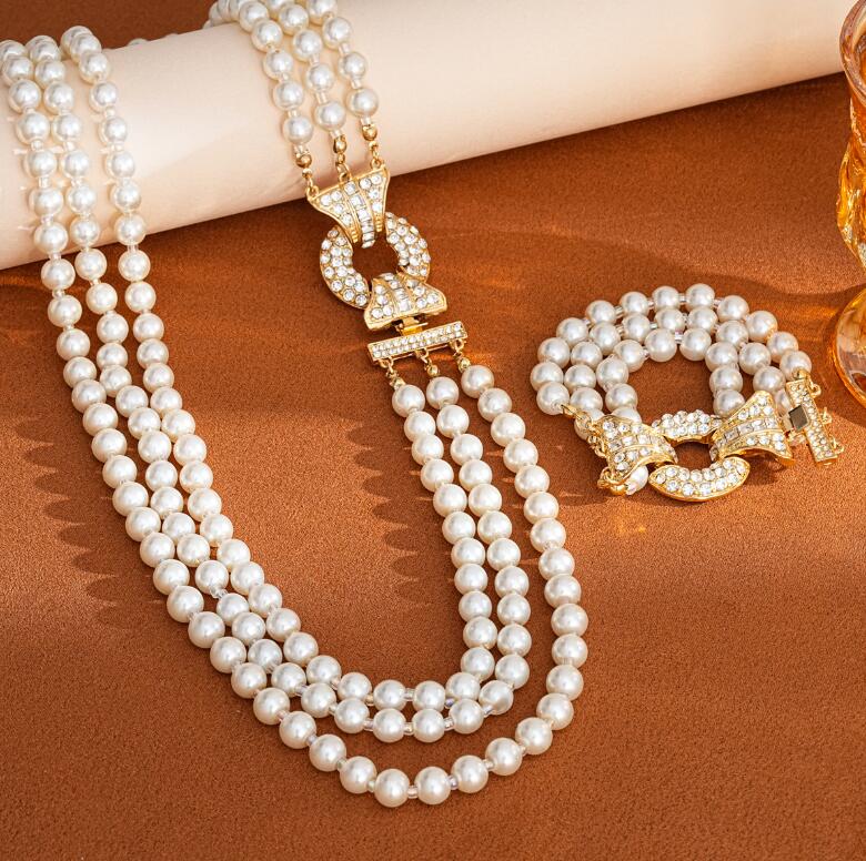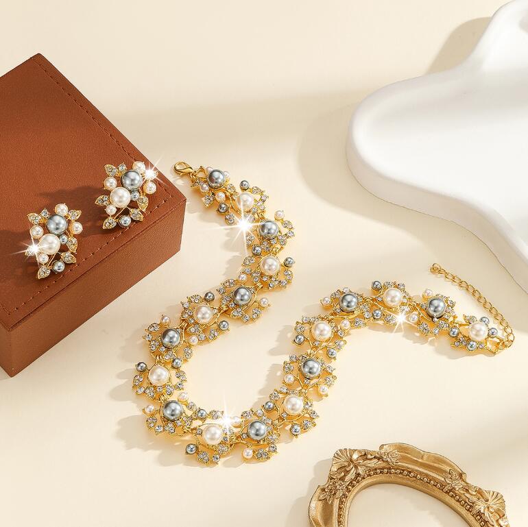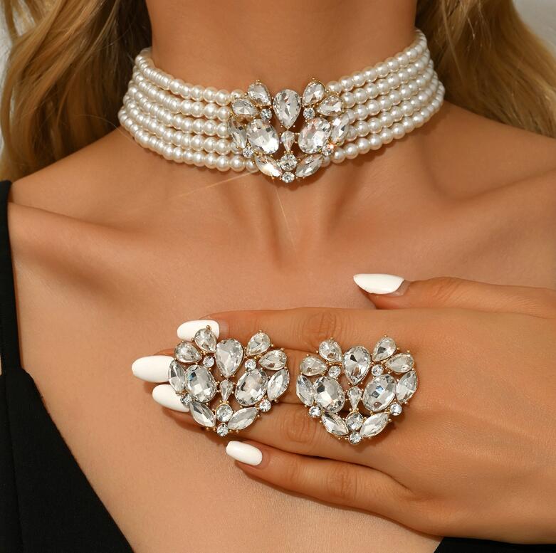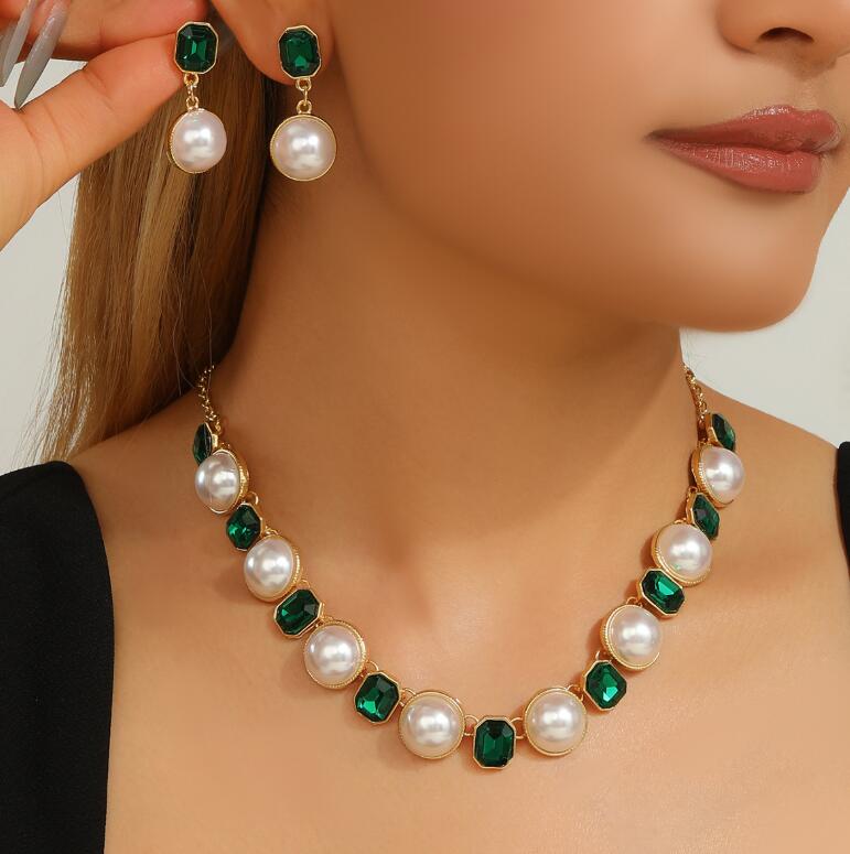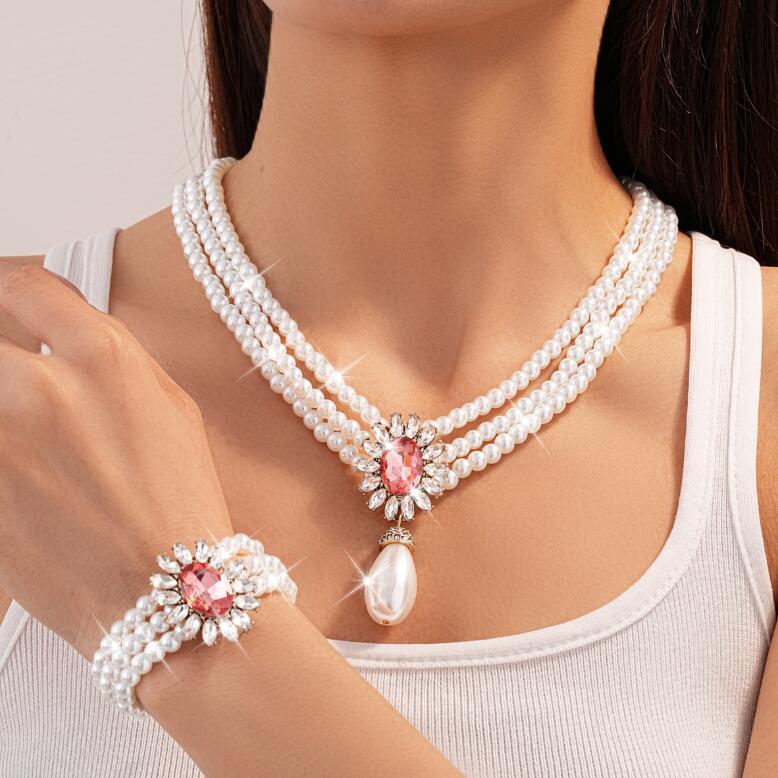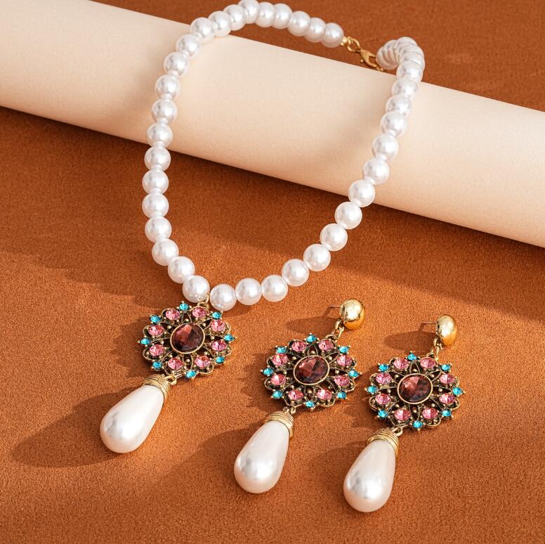 Retro necklace set for ladies' accessories dazzling imitation pearls and exaggerated jewelry