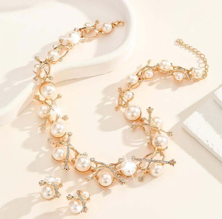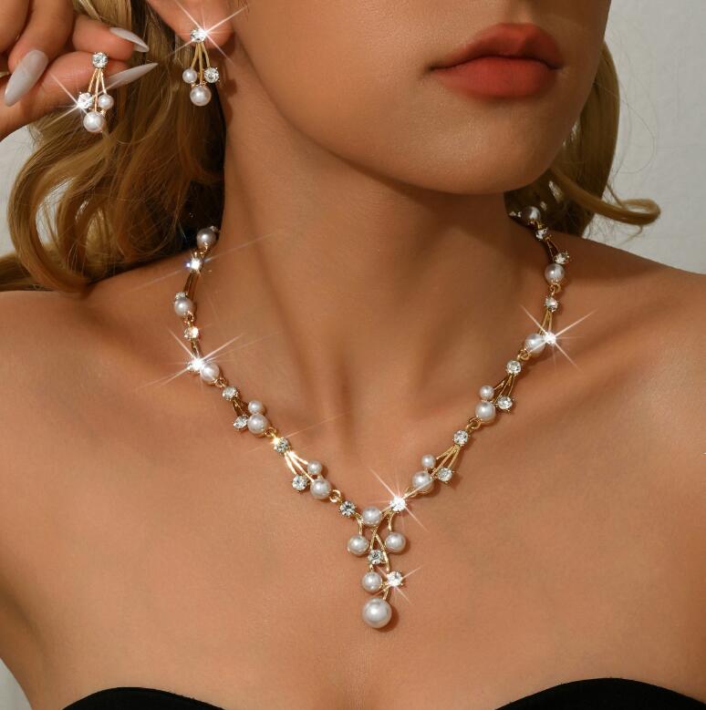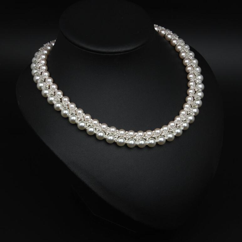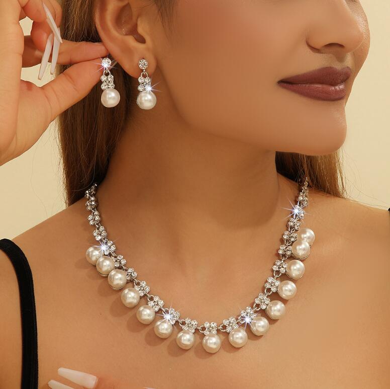 Fashion imitation pearl alloy necklace set engagement crystal jewelry accessories