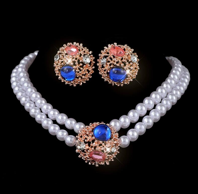 Cross-border diamond-set flower pearl necklace with multi-layer collar chain