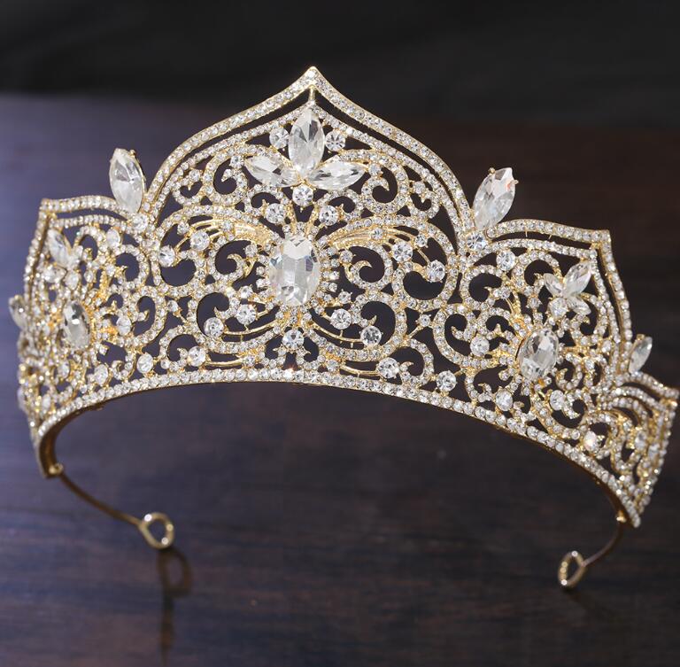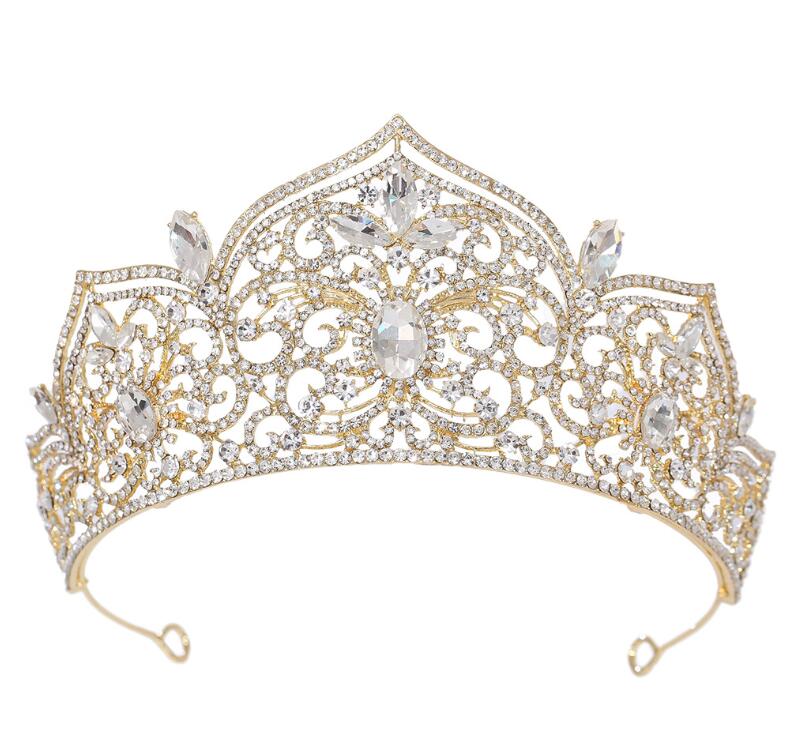 European American Retro Bride Crown Large Gold Plated Baroque Queen Wedding Dress Accessory Women's Crystal Tiara