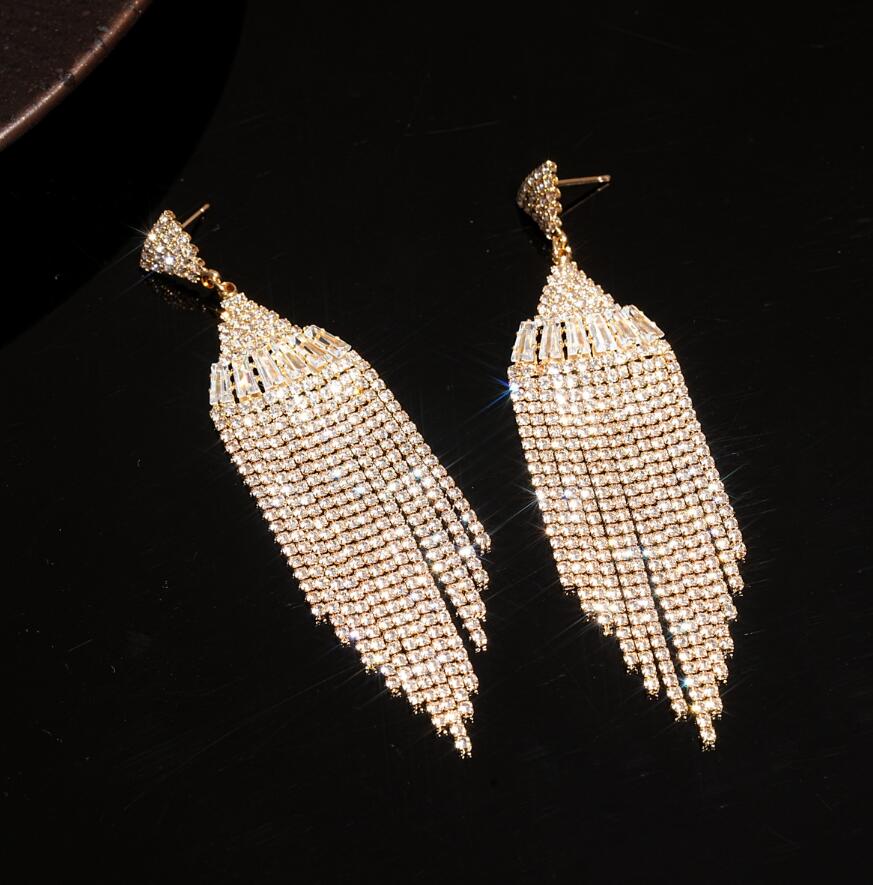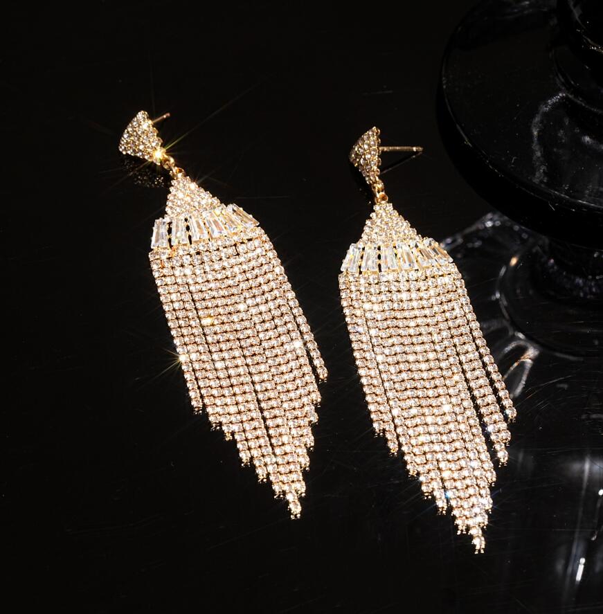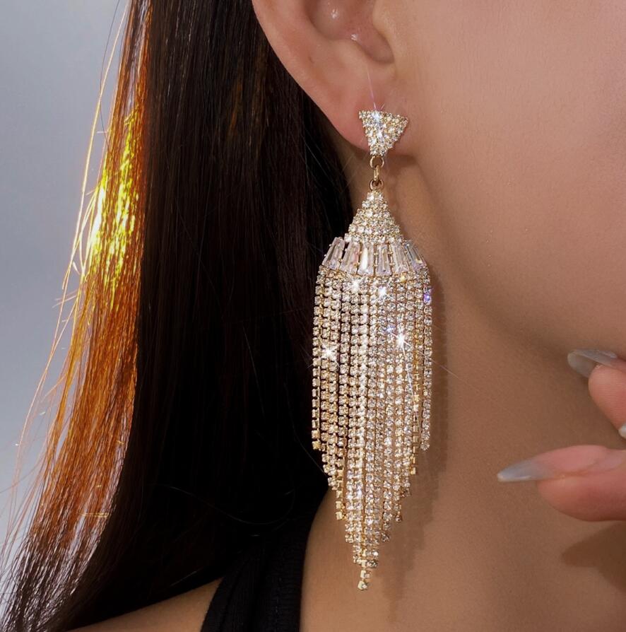 Fashion long fringed crystal earrings for women exaggerated ear ornaments