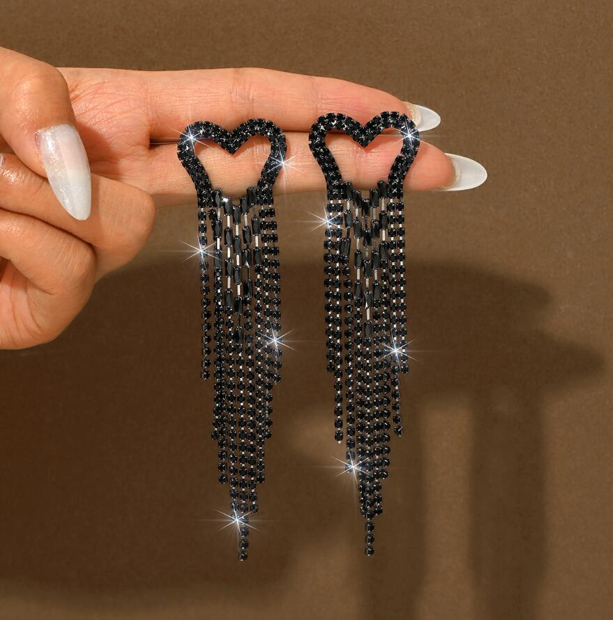 Long fringed earrings for women luxurious and shiny diamond-studded ear accessories