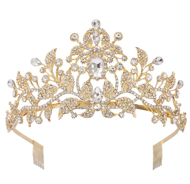Luxury Beauty Bridal Miss World Gold Princess Girls Floral Big Large Pageant Crystal Hair Tiaras
