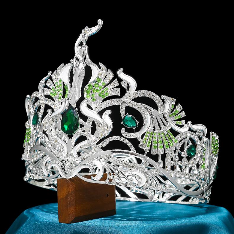 5.2 inch tall, 6.8 inch Dia. Material: Alloy + Clear or colored Crystal