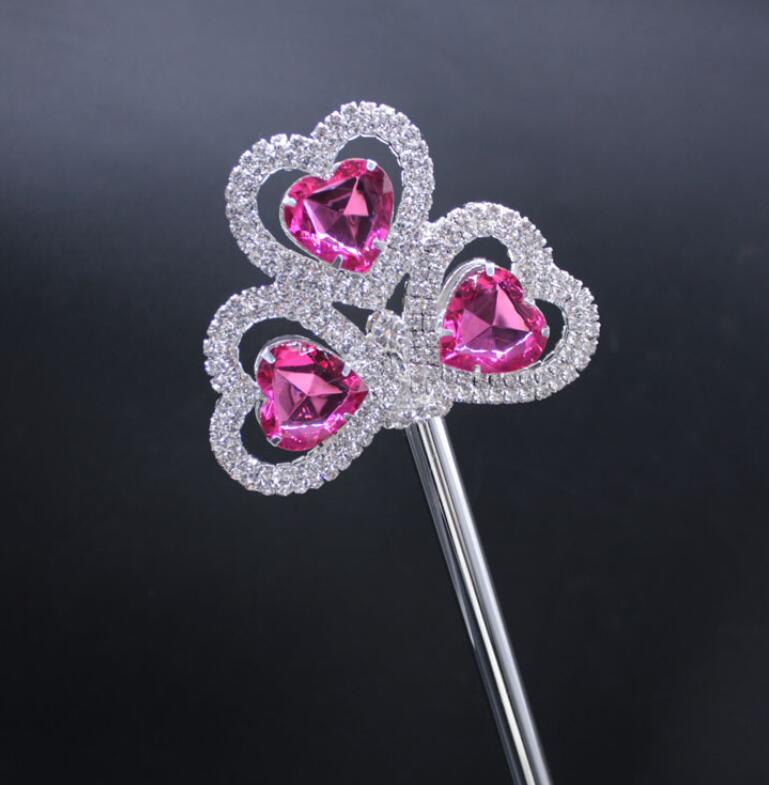 Heart-shaped crystal metal scepter beauty pageant event props princess magic wand birthday gift design