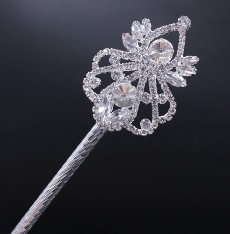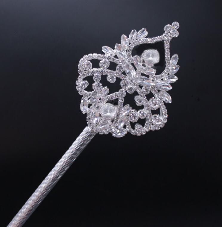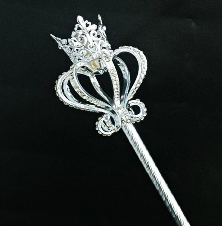 Crystal Handmade Long Silver Scepter Prop Beauty Pageant Party Scepter Costumes Decoration Accessoires