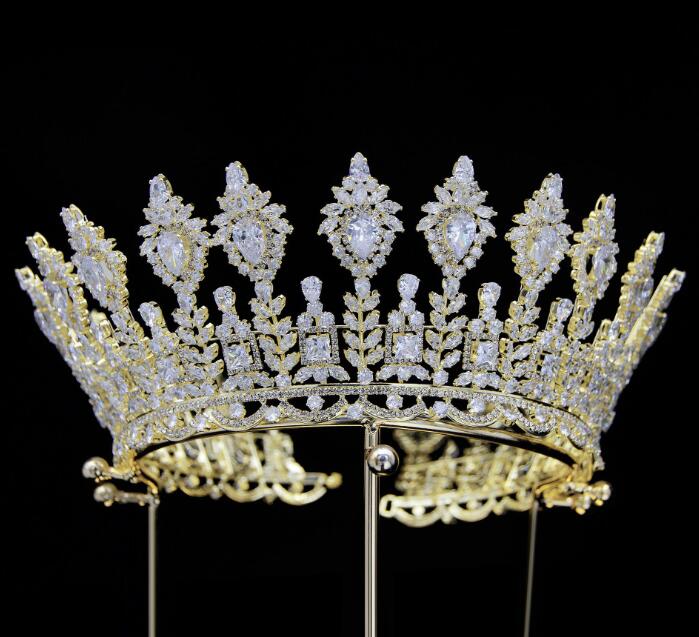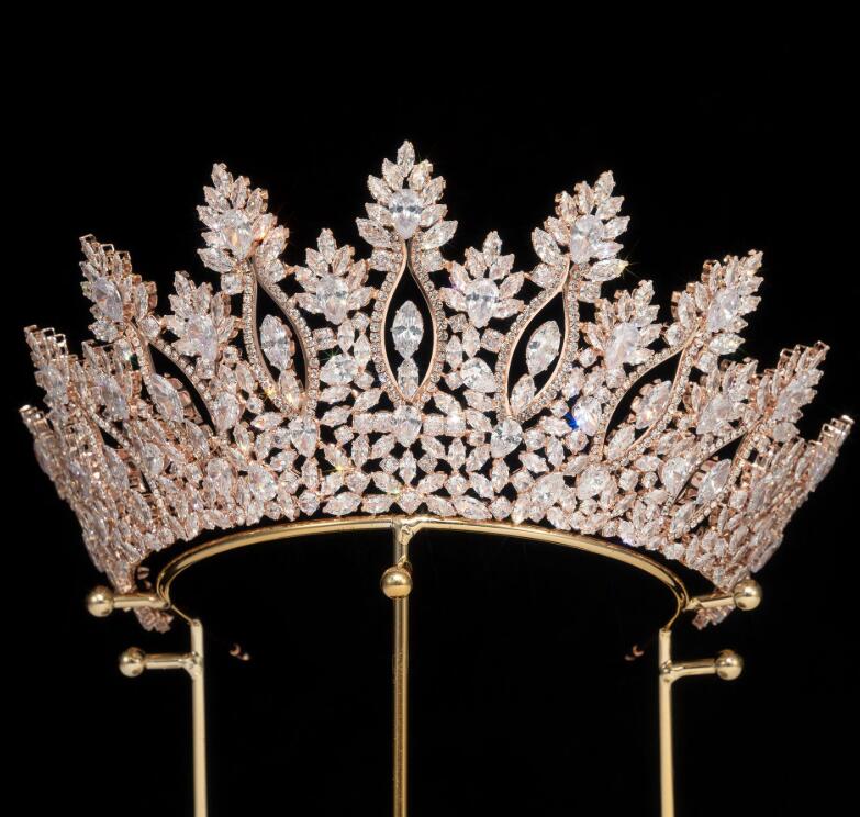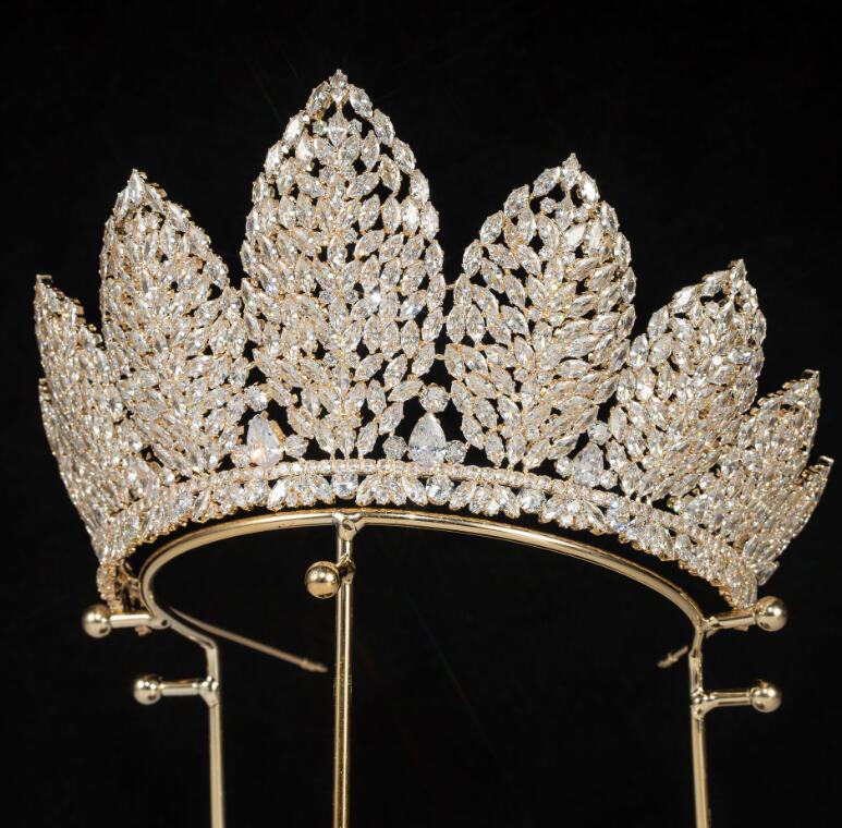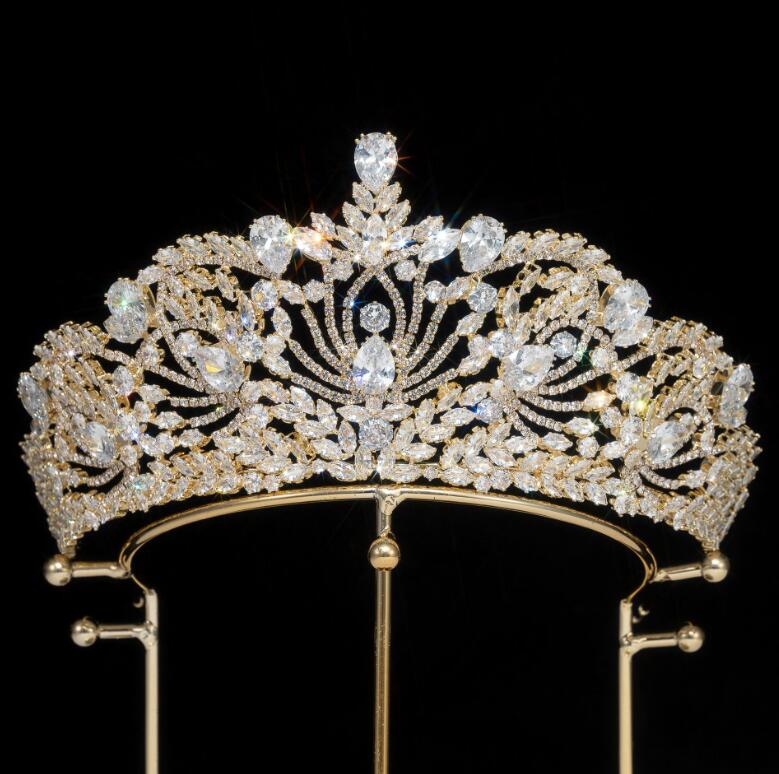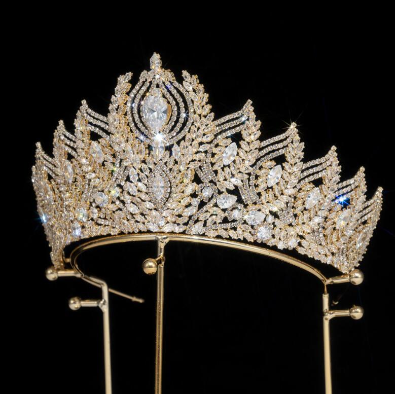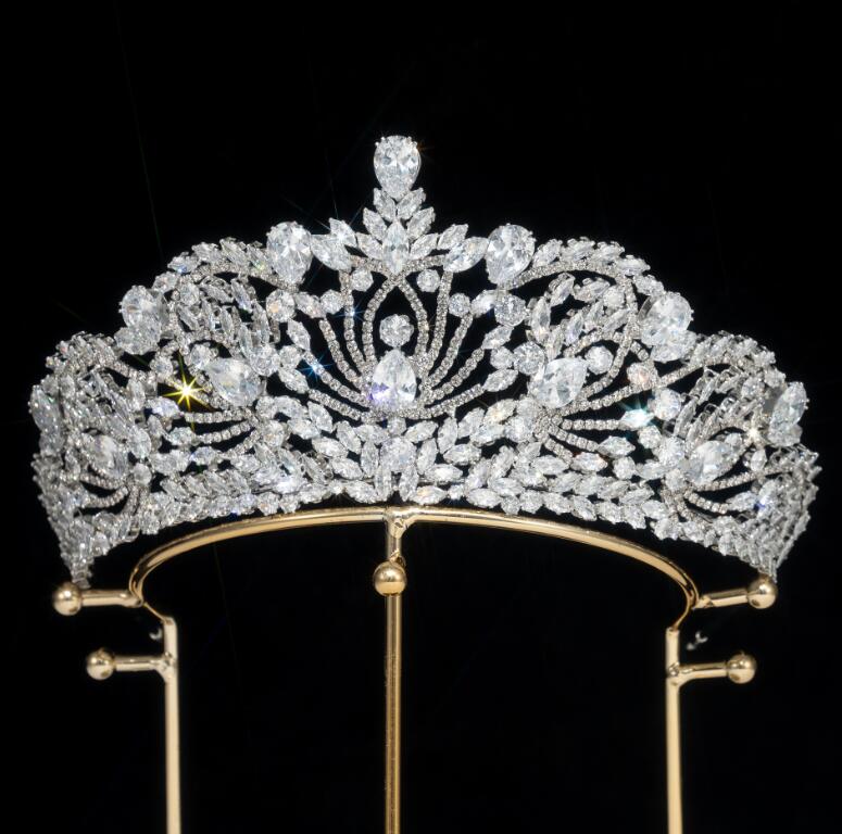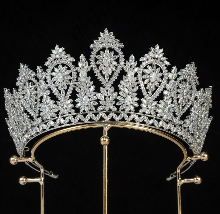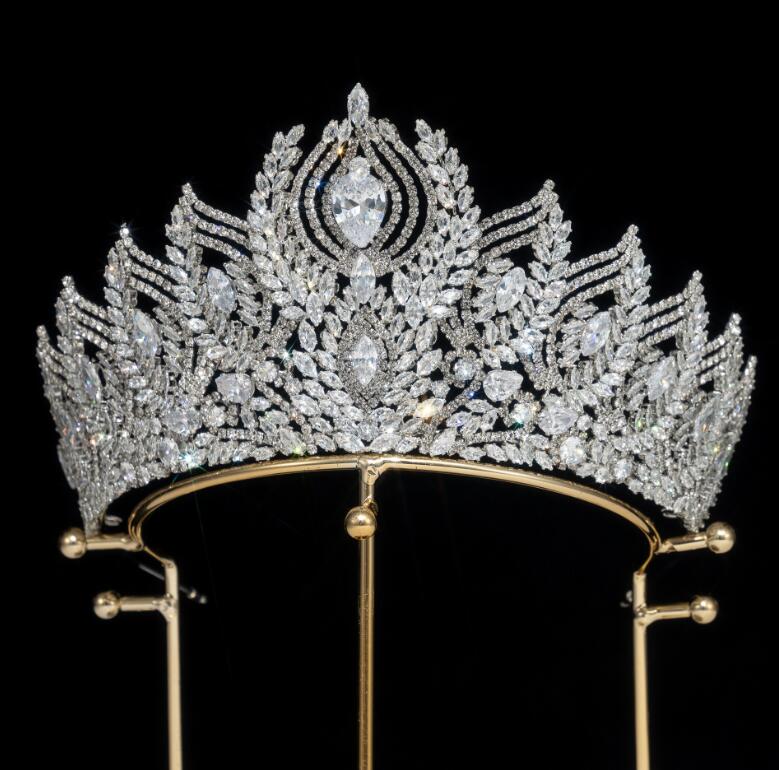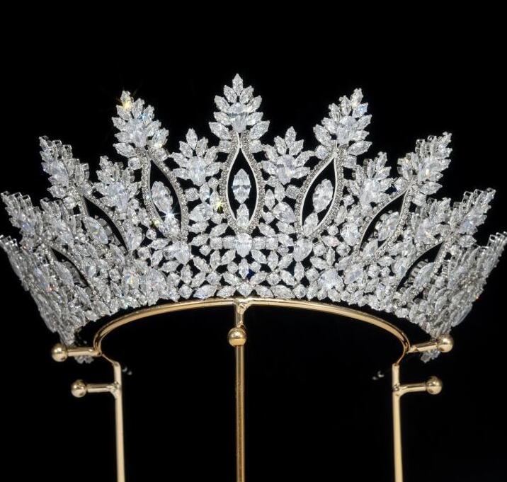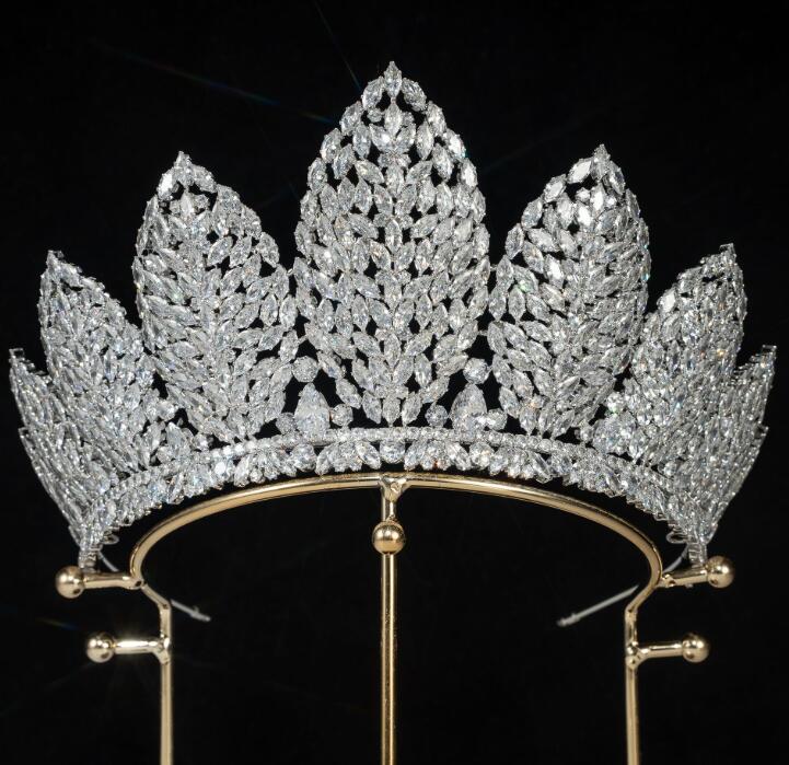 Luxury Zircon Pageant Crowns Large Wedding Hair Accessories Crown Bridal Tiara