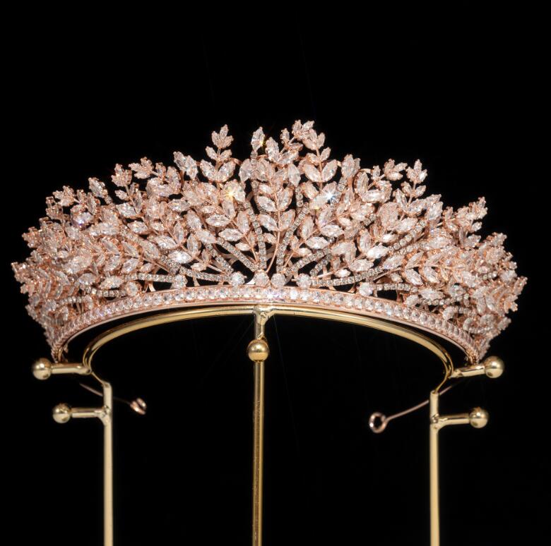 Copper Zircon Crown Hair Accessory for Women for Wedding Pageant Princess Birthday or Anniversary