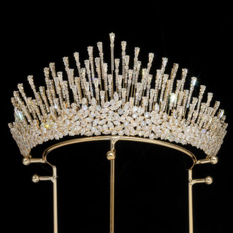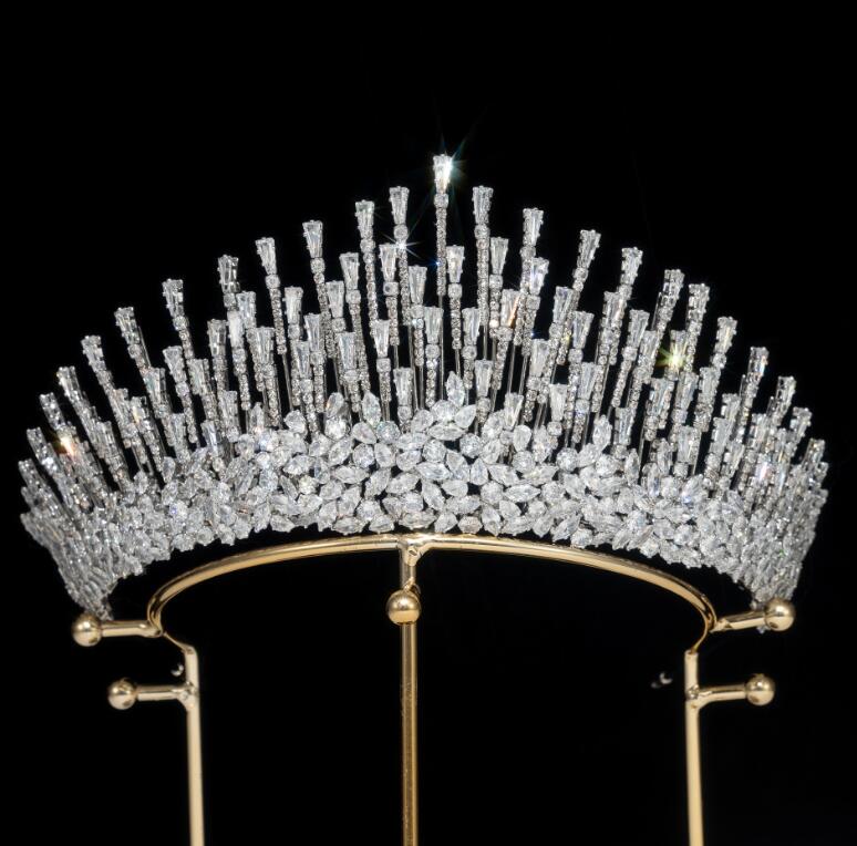 High Quality Bridal Tall Hair Crown Zirconia Wedding Engagement Crown Bridal Tiaras
